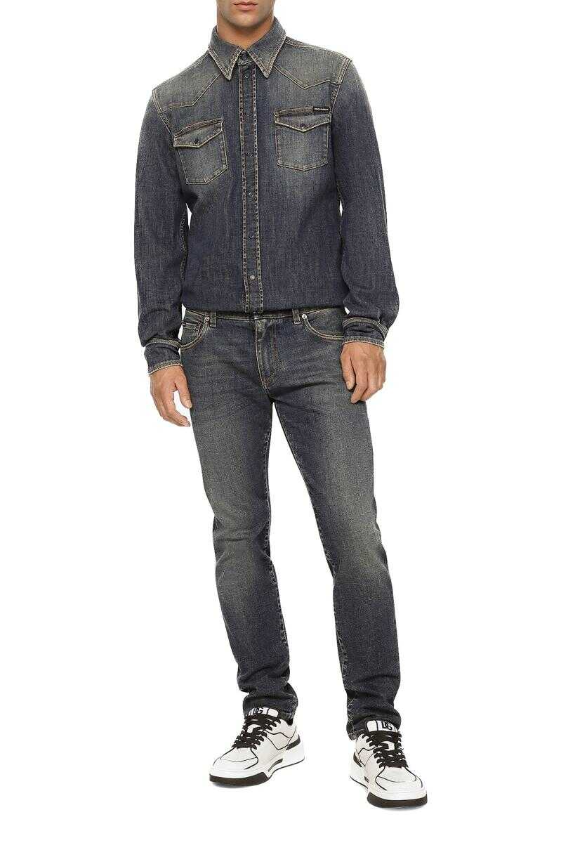 Five-pocket slim-fit jeans in light blue wash stretch denim:
