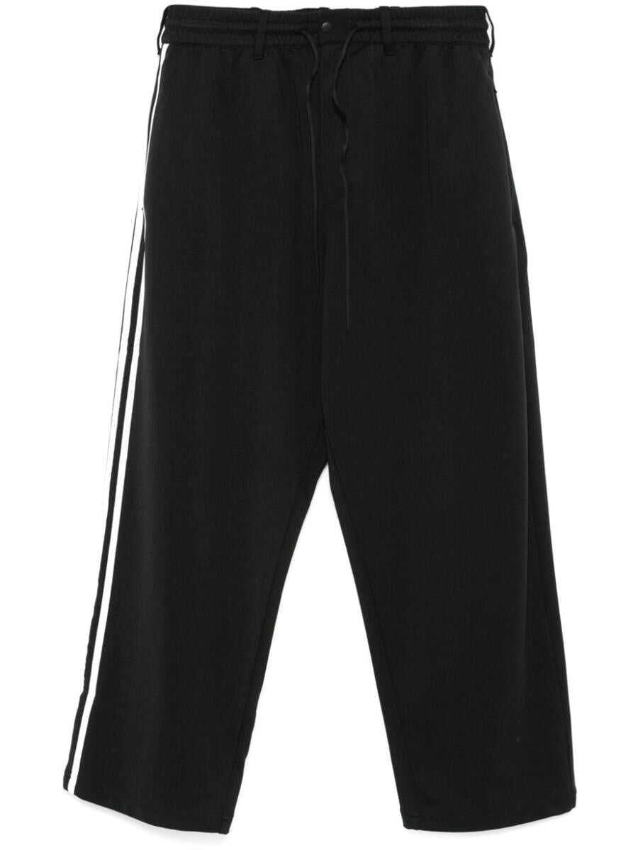 black cotton jersey texture front press-stud and zip fastening elasticated drawstring waistband belt loops signature 3-Stripes logo two side zip-fastening pockets logo print to the rear two rear welt pockets straight leg When buying this unisex item, keep in mind that it is graded in standard men's sizing.