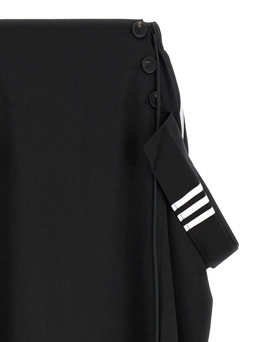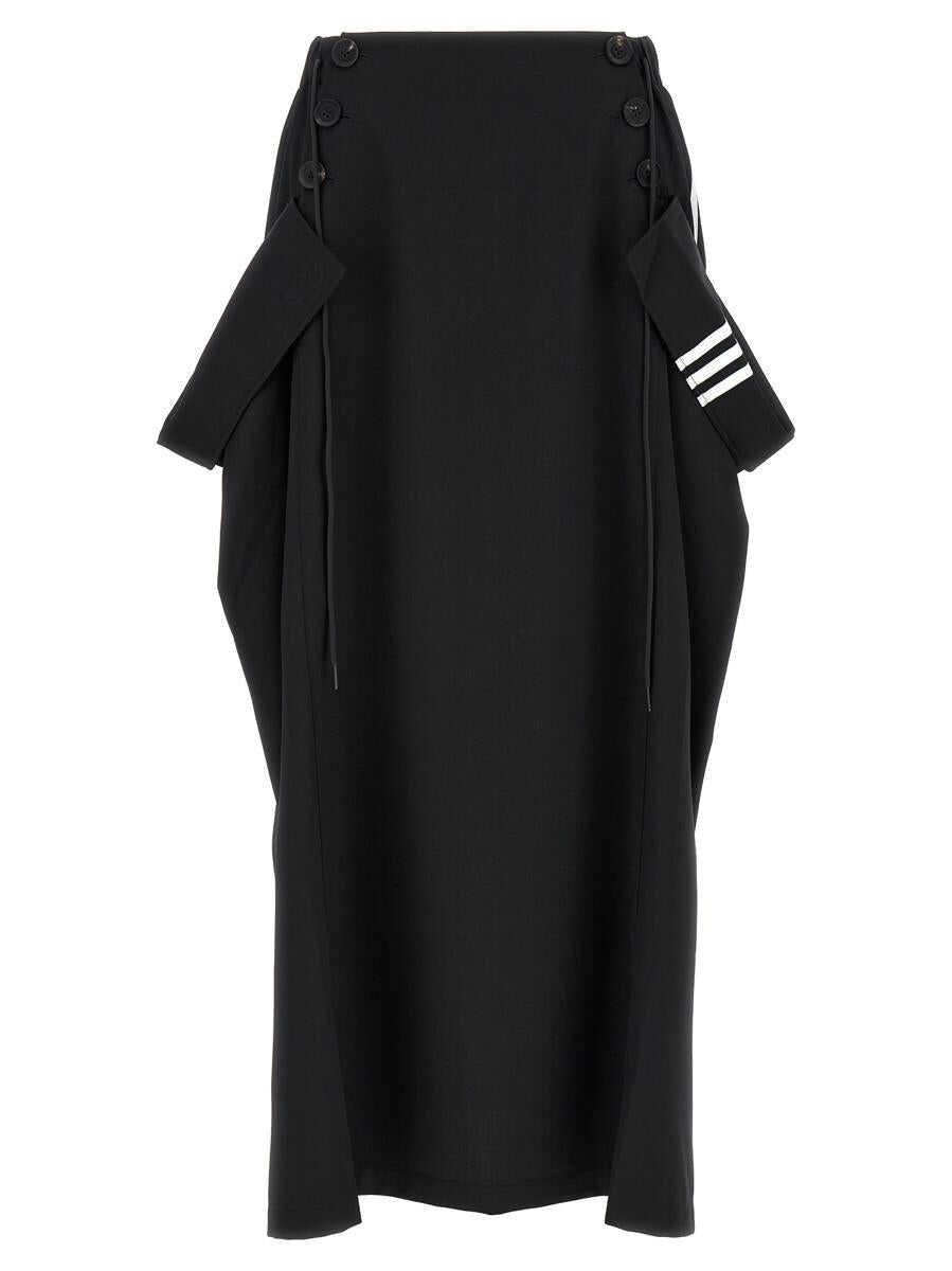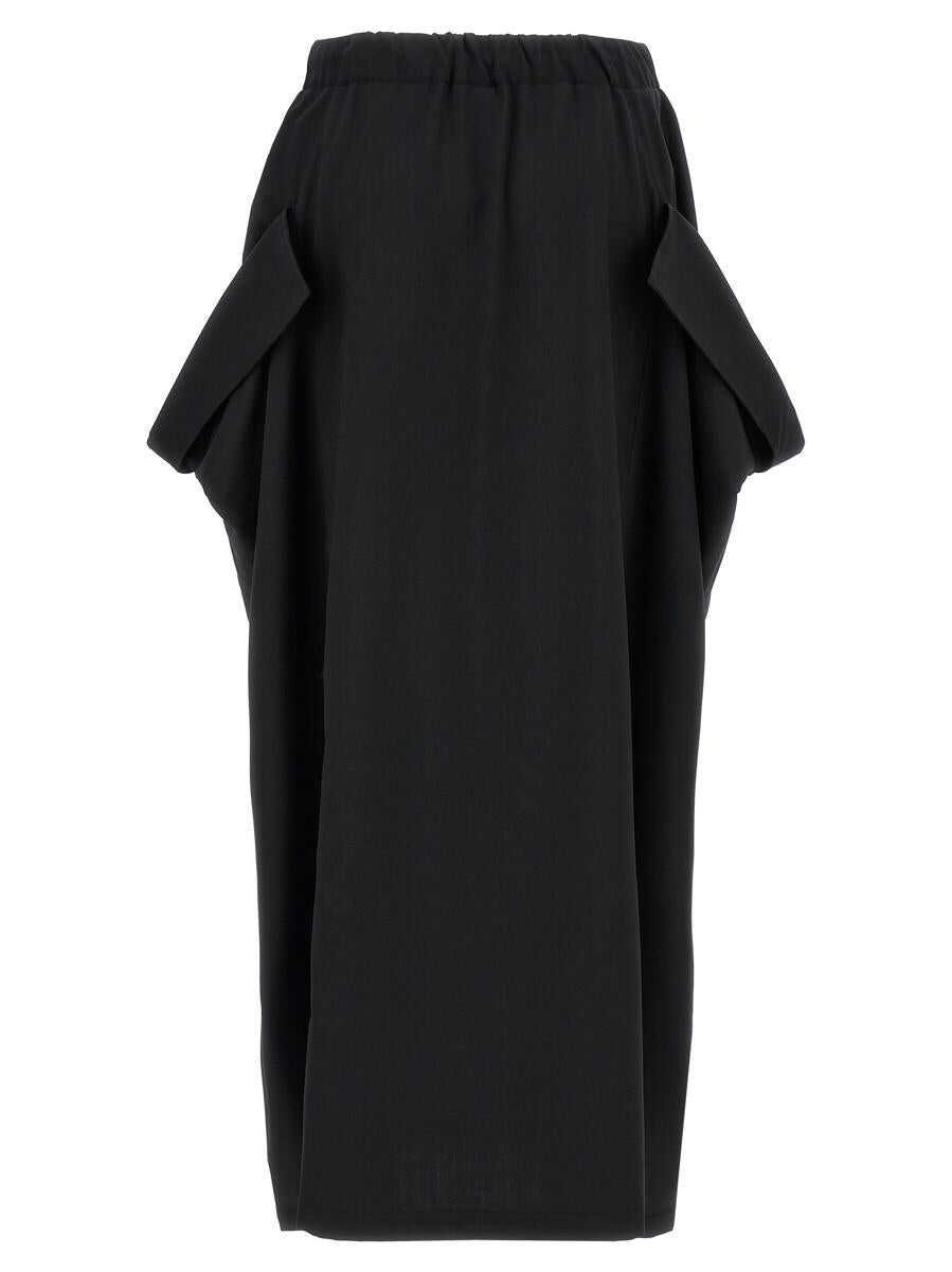 'Refined Woven Maxi' wool blend skirt with iconic contrasting band detail, elastic and drawstring at the waist, front button closure, pockets