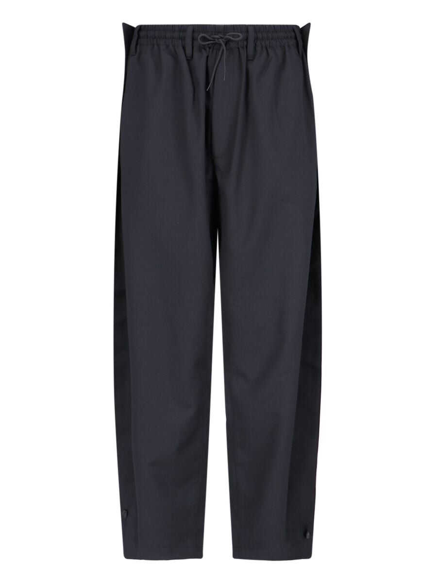 'M Ref Wo Tp' wool blend joggers with elastic waistband and drawstring, belt loops, contrasting side bands, pockets, back logo print