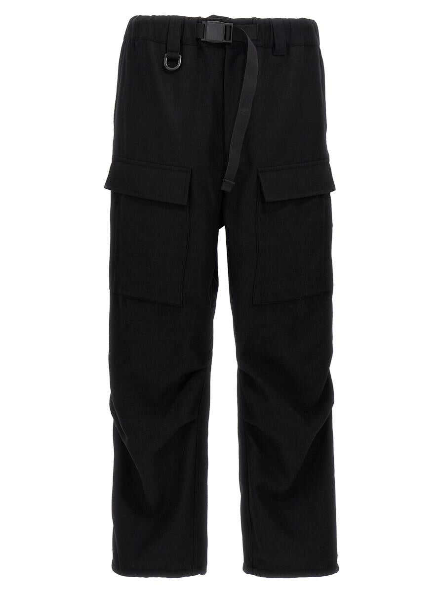 'Flannel Crg' wool blend pants, zip and button closure, adjustable belt at the waist, pockets