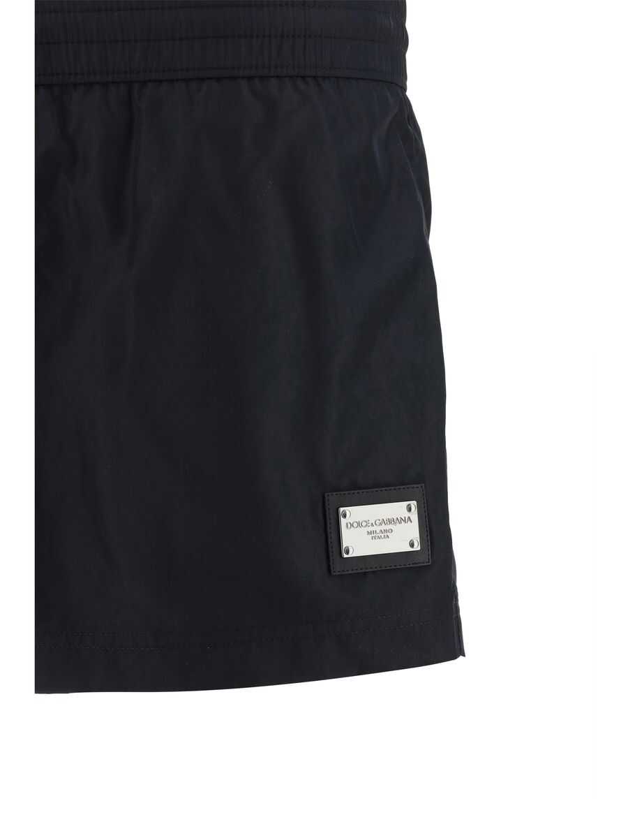 black stretch-design silver-tone logo plaque elasticated drawstring waistband rear zip-fastening pocket straight leg thigh-length Be mindful to try on swimwear over your own garments.