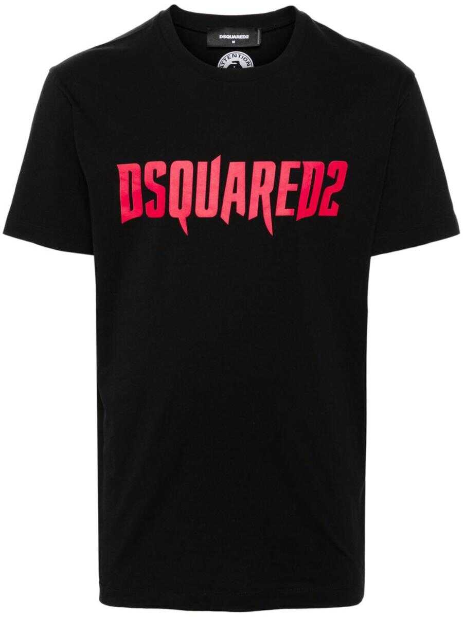 black cotton jersey texture crew neck short sleeves logo print at the chest straight hem