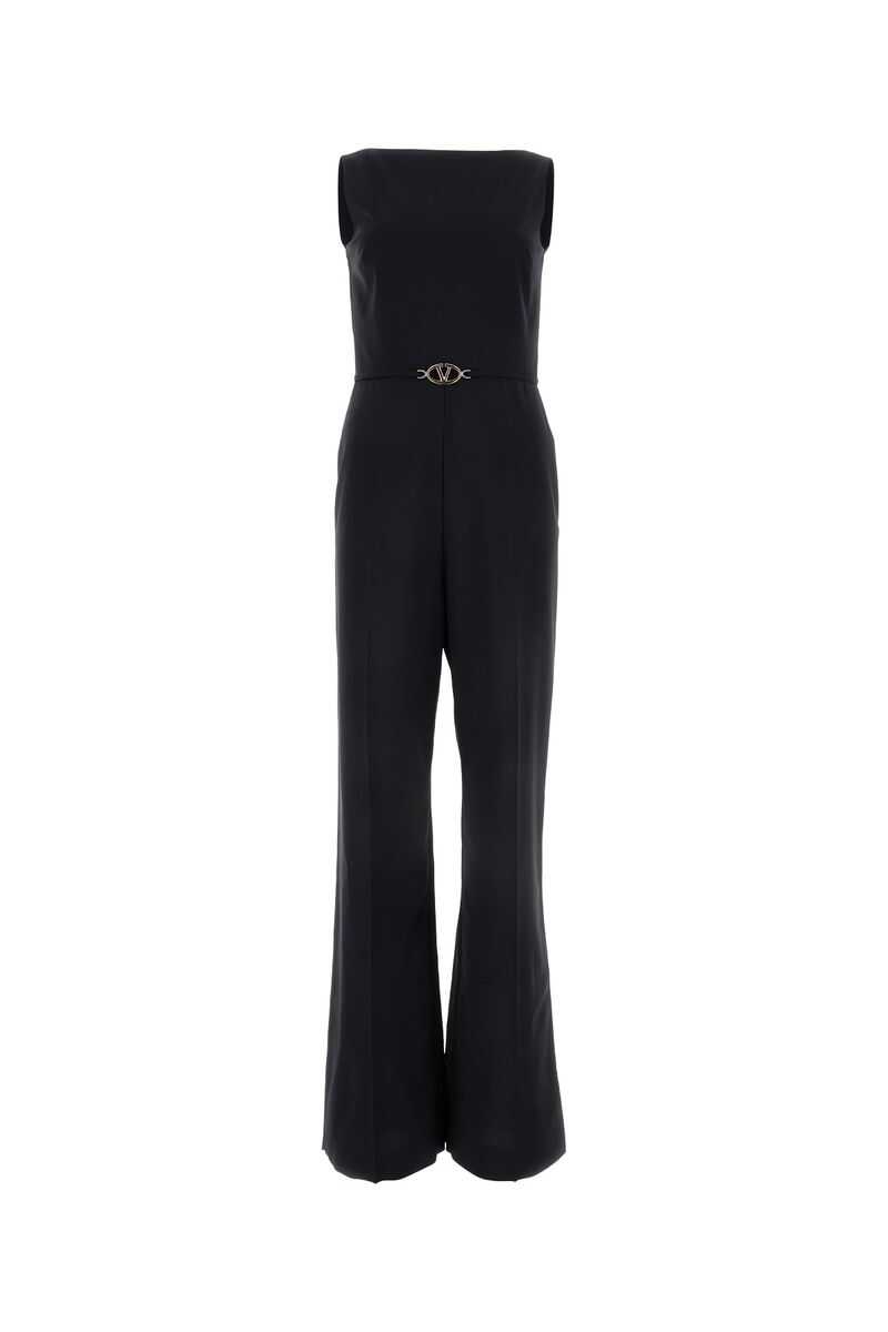 Valentino Ready To Wear midnight blue virgin wool-mohair blend crew neck sleeveless VLogo Signature fitted waistline pressed crease two side inset pockets two rear jetted pockets