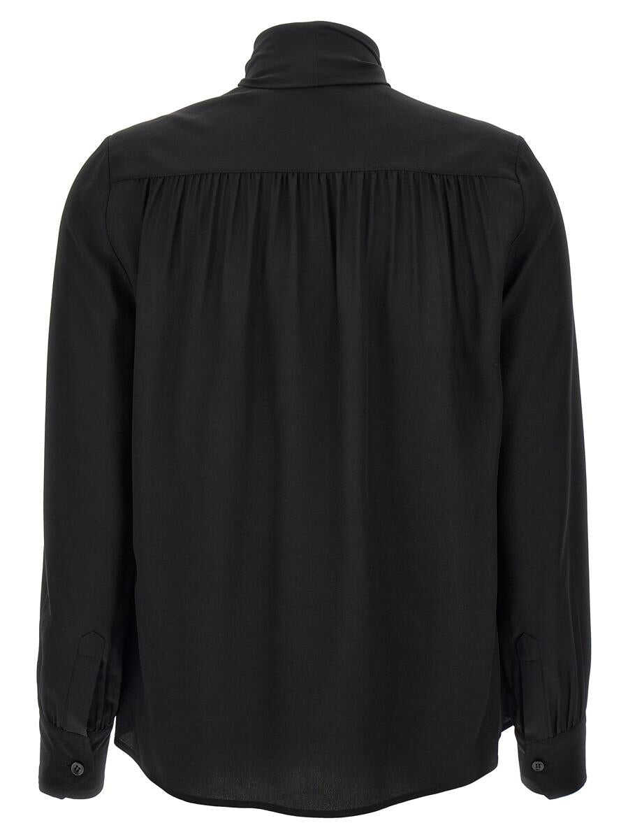 Silk shirt with button closure, lavalliere collar, long cuffed sleeves