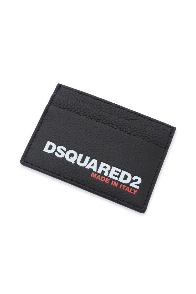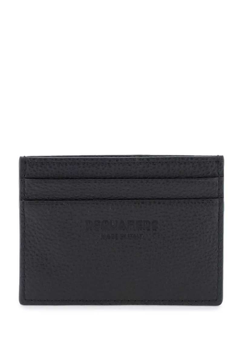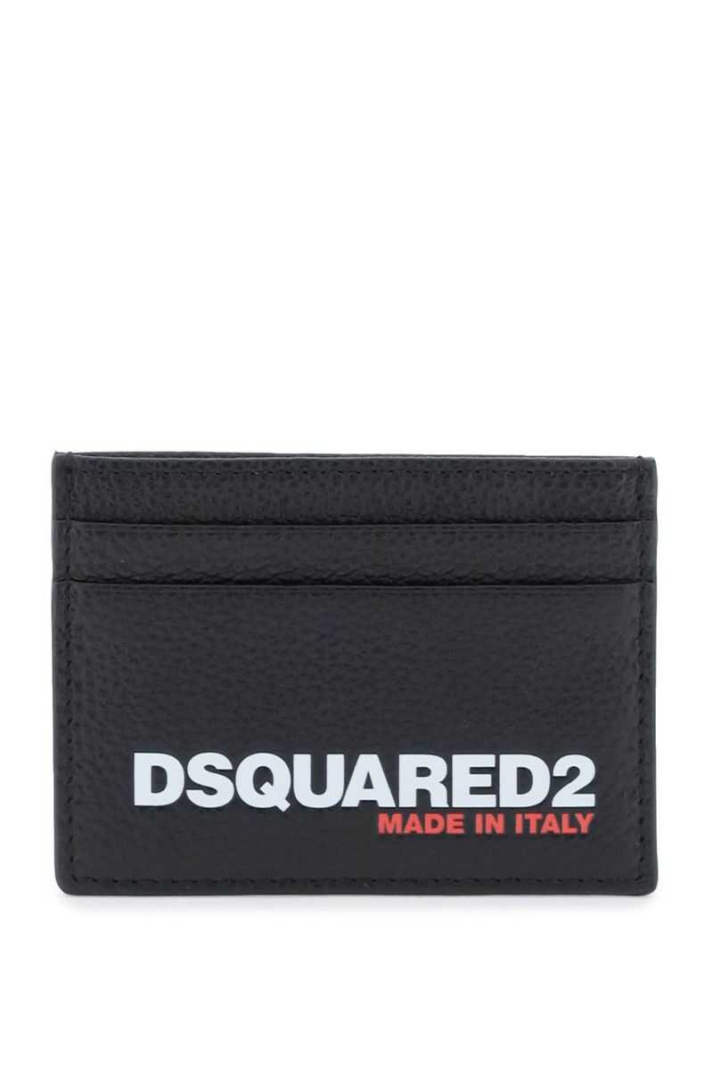 logo-print leather cardholder from DSQUARED2 featuring black, calf leather, cotton, logo print to the front, debossed detailing and card slots.