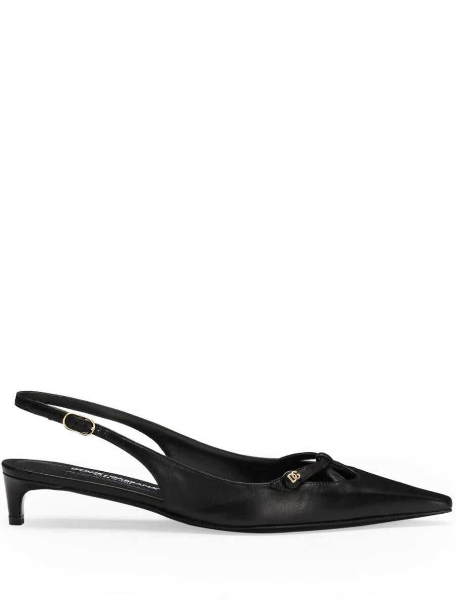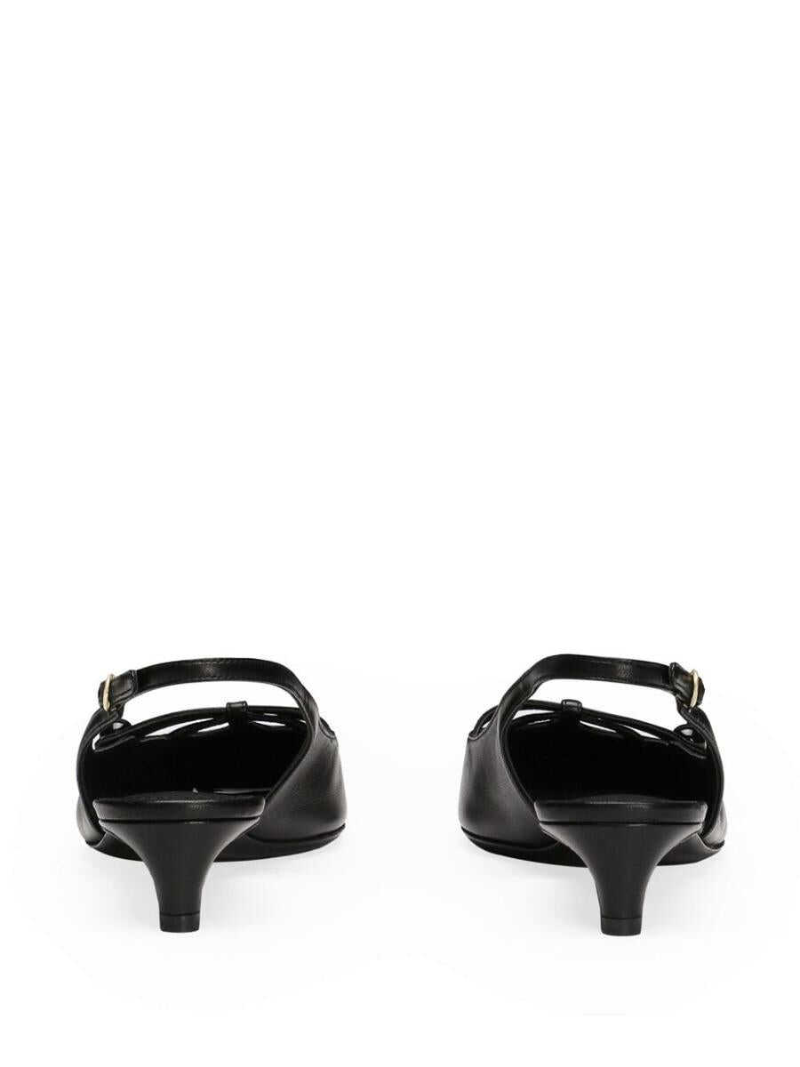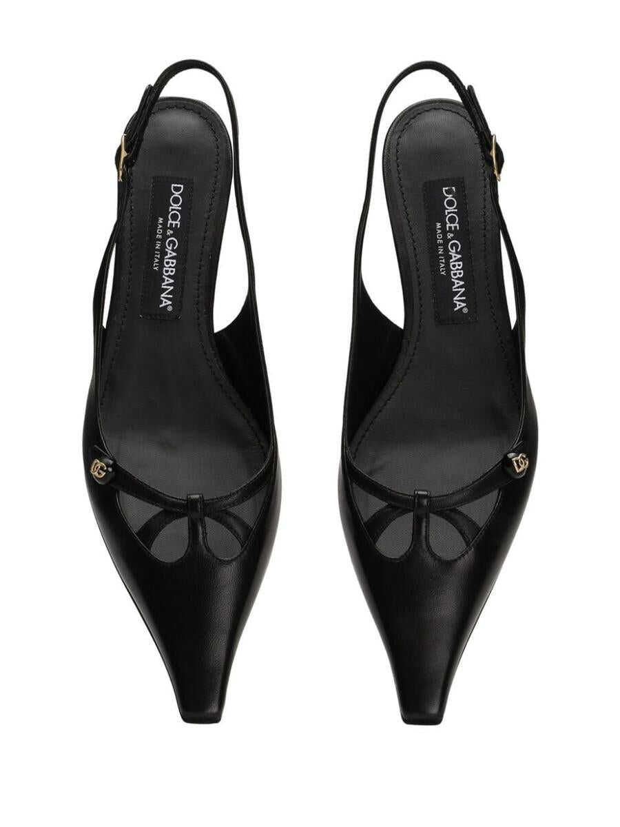 black leather gold-tone logo plaque slingback strap pointed toe buckle fastening low heel logo tag on insole