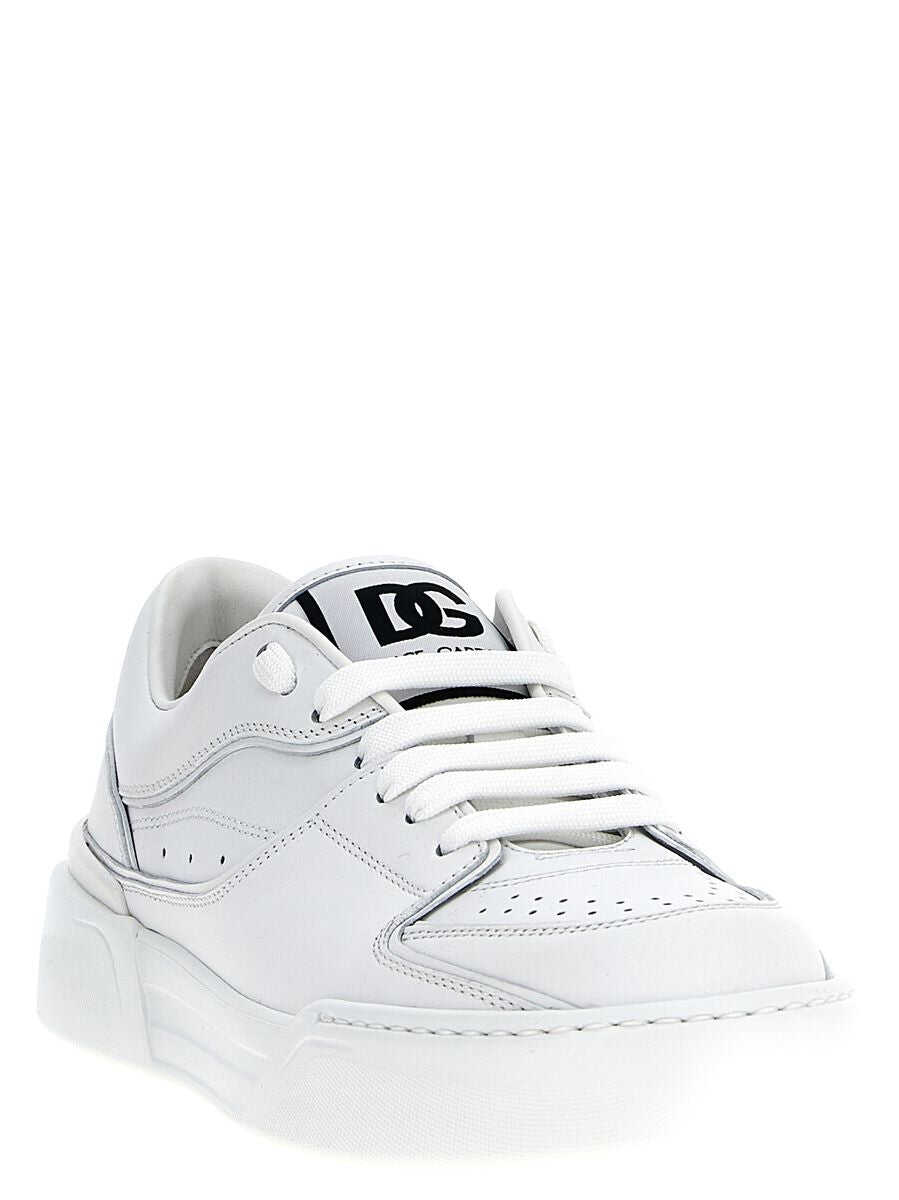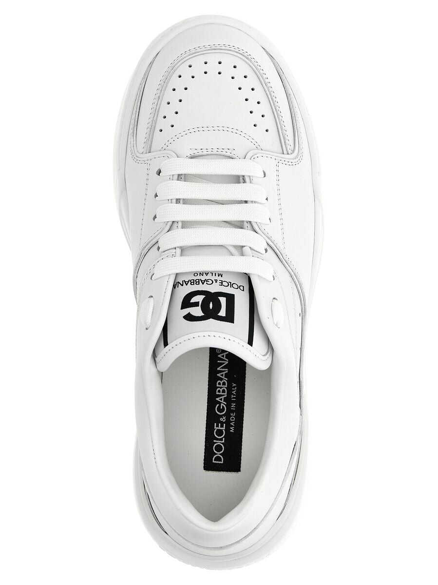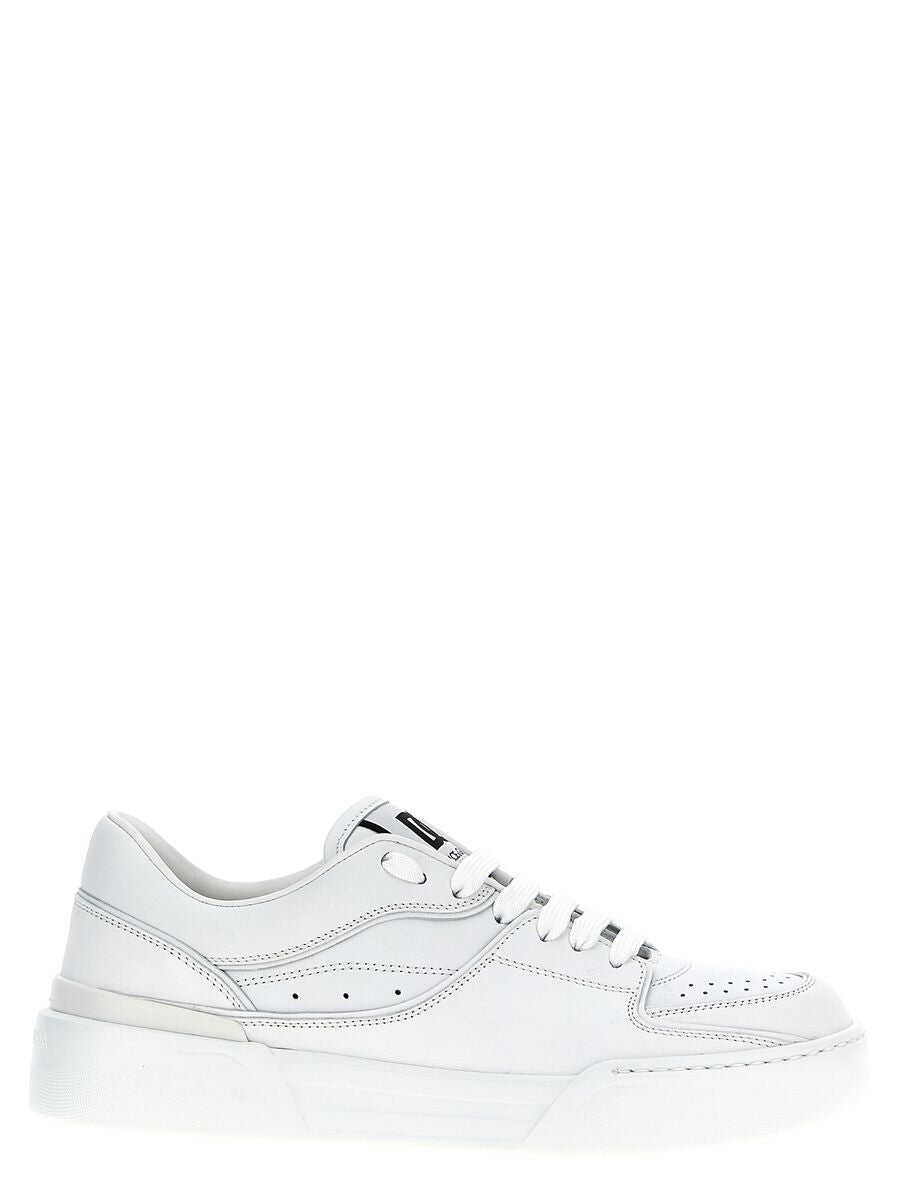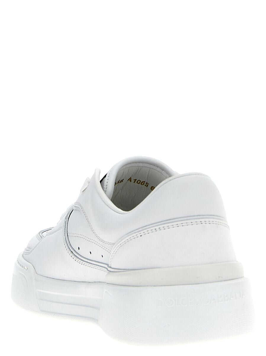 Roma low-top sneakers from dolce & gabbana featuring white, nappa leather, logo patch at the tongue, branded heel counter, perforated detailing, round toe, front lace-up fastening and flat rubber sole.