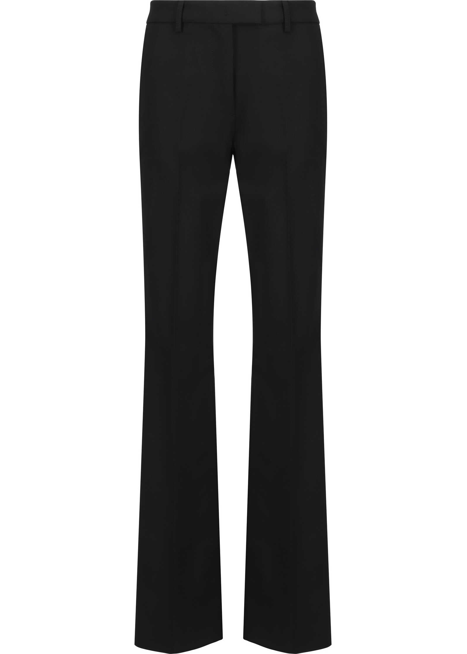 Ann Pants by The Latest, front button and zipper closure, two side slash pockets, two welt pockets on back, belt loops waistband, monochrome pattern.