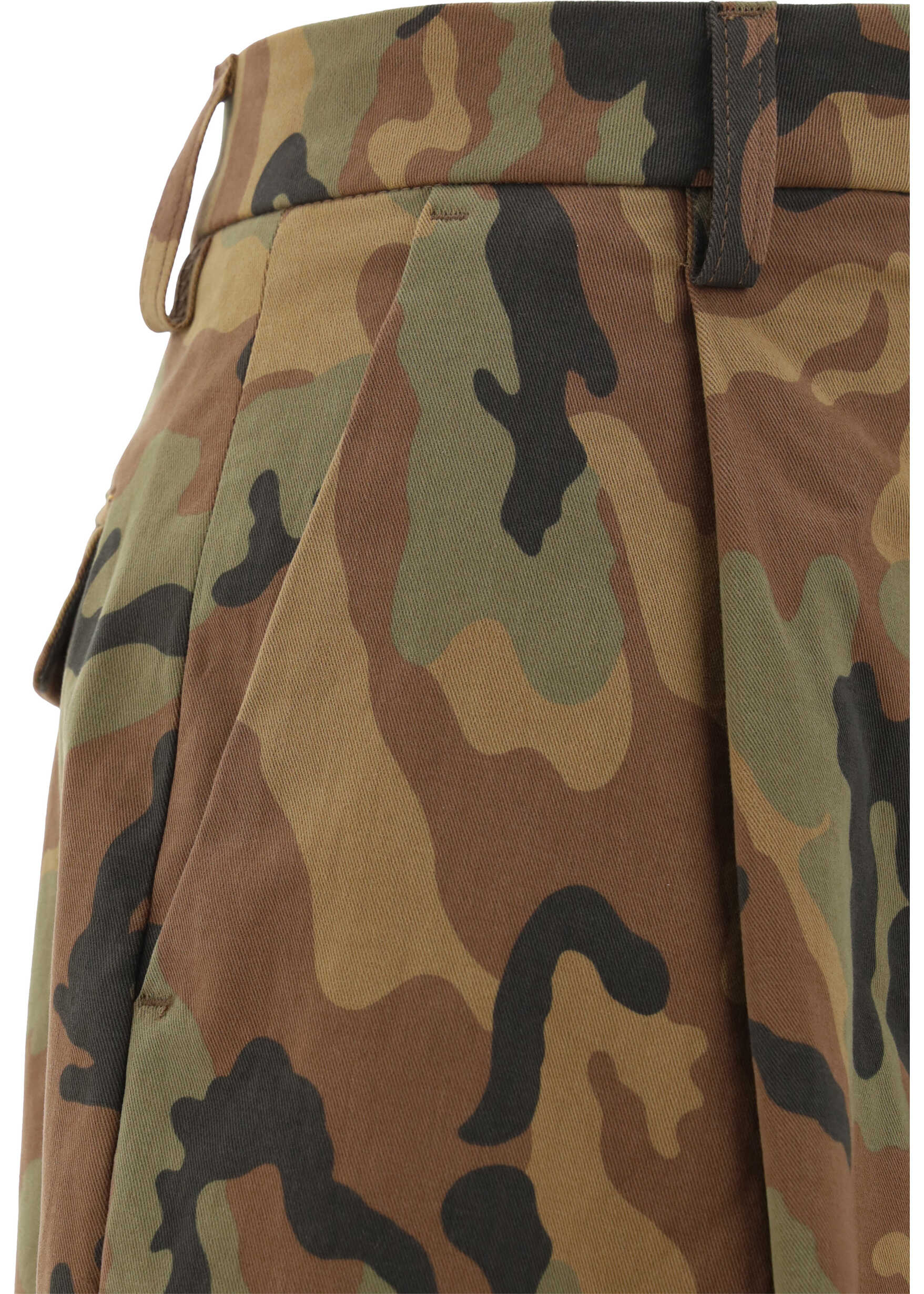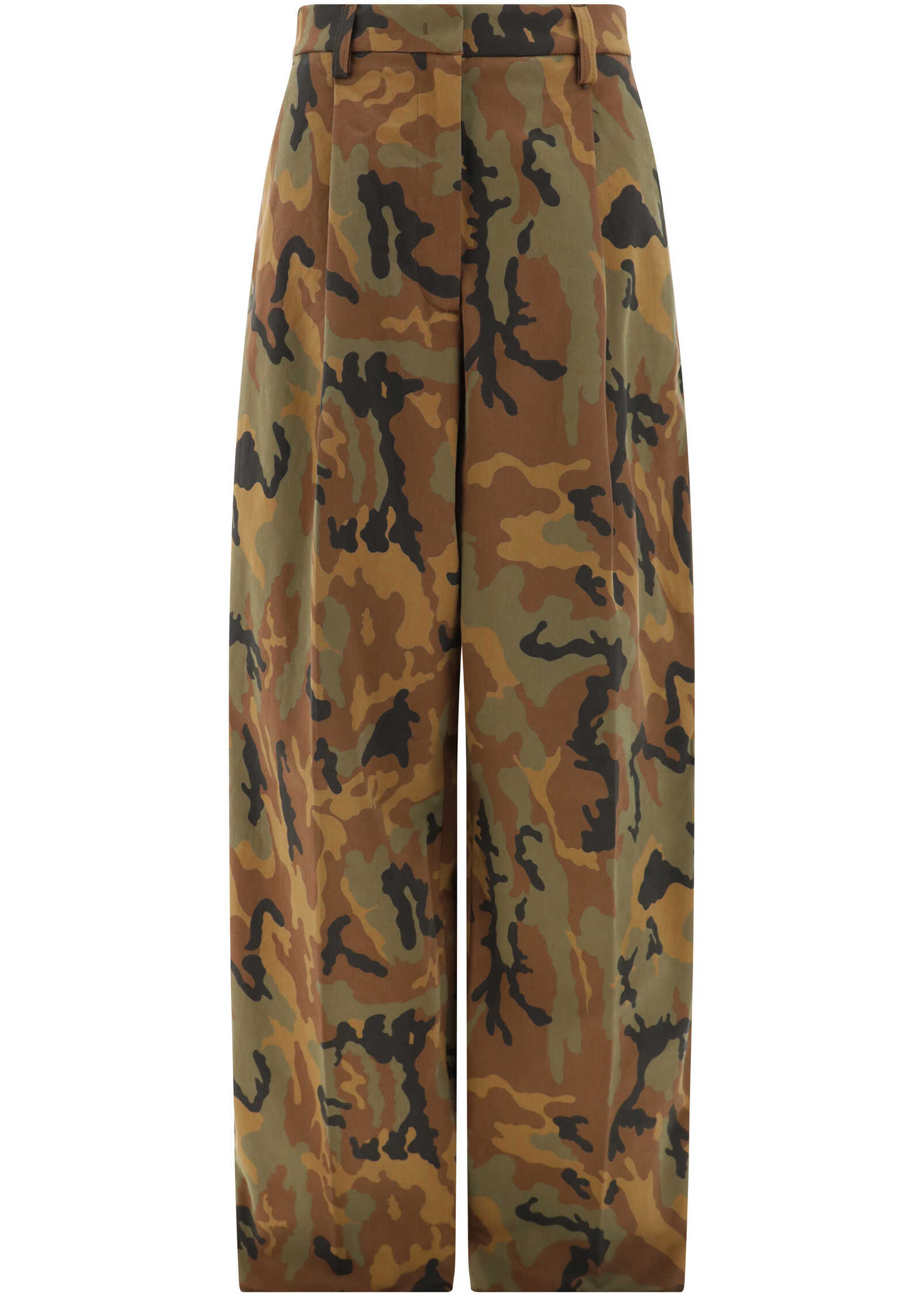 Pants by The Latest, palazzo style, front zipper and hook-and-eye closure, two side slash pockets, die back welt pockets with flap, waistband loops, all-over camouflage pattern, regular fit.