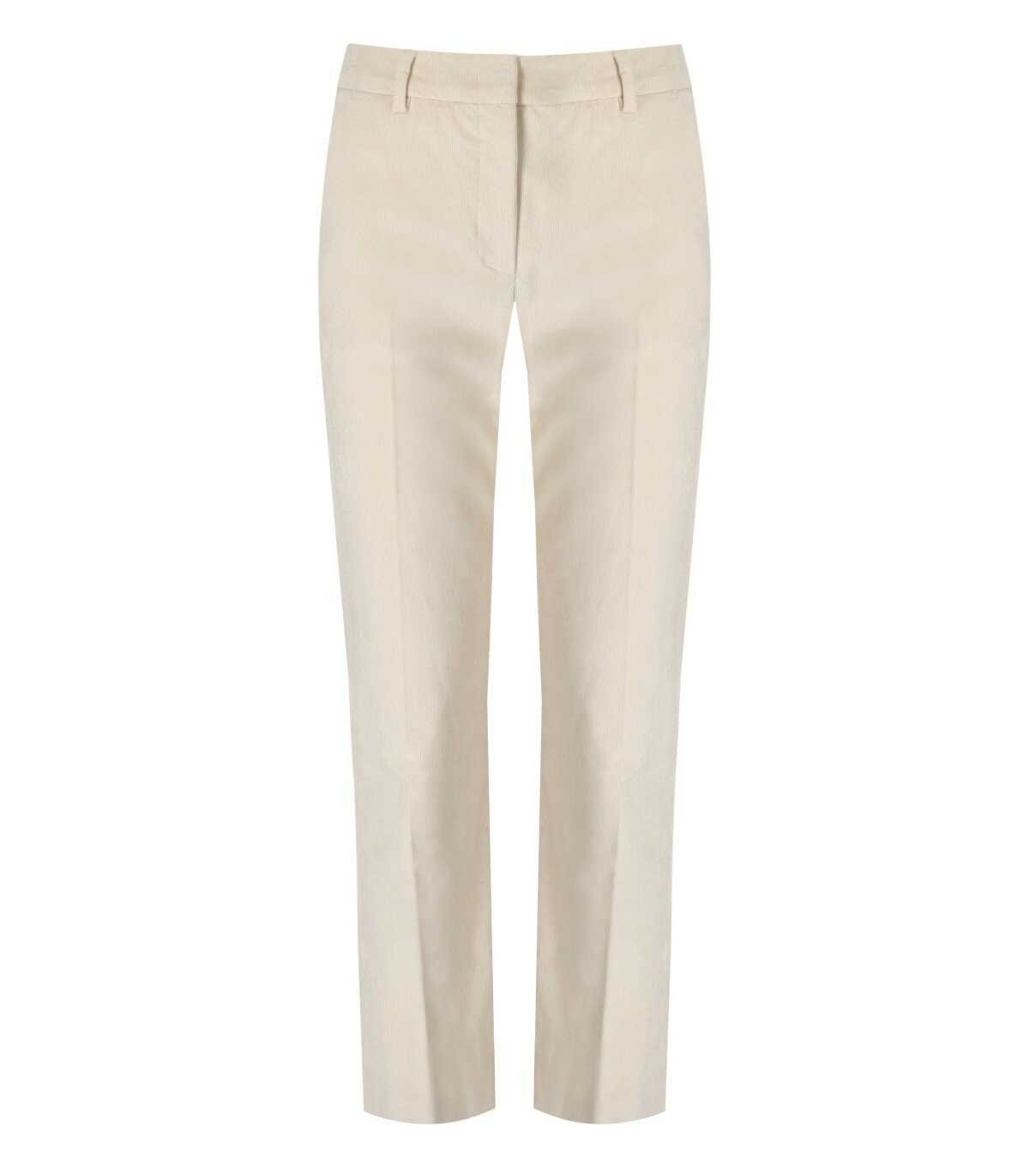 Max Mara Weekend Marruca trousers made of cotton in milk white color. Characterized by a velvet ribbed texture, it has a slightly flared silhouette at the bottom. Zip closure with a high waistband. French pockets on the sides. Double welt pockets finished with buttons at the back. Regular fit.