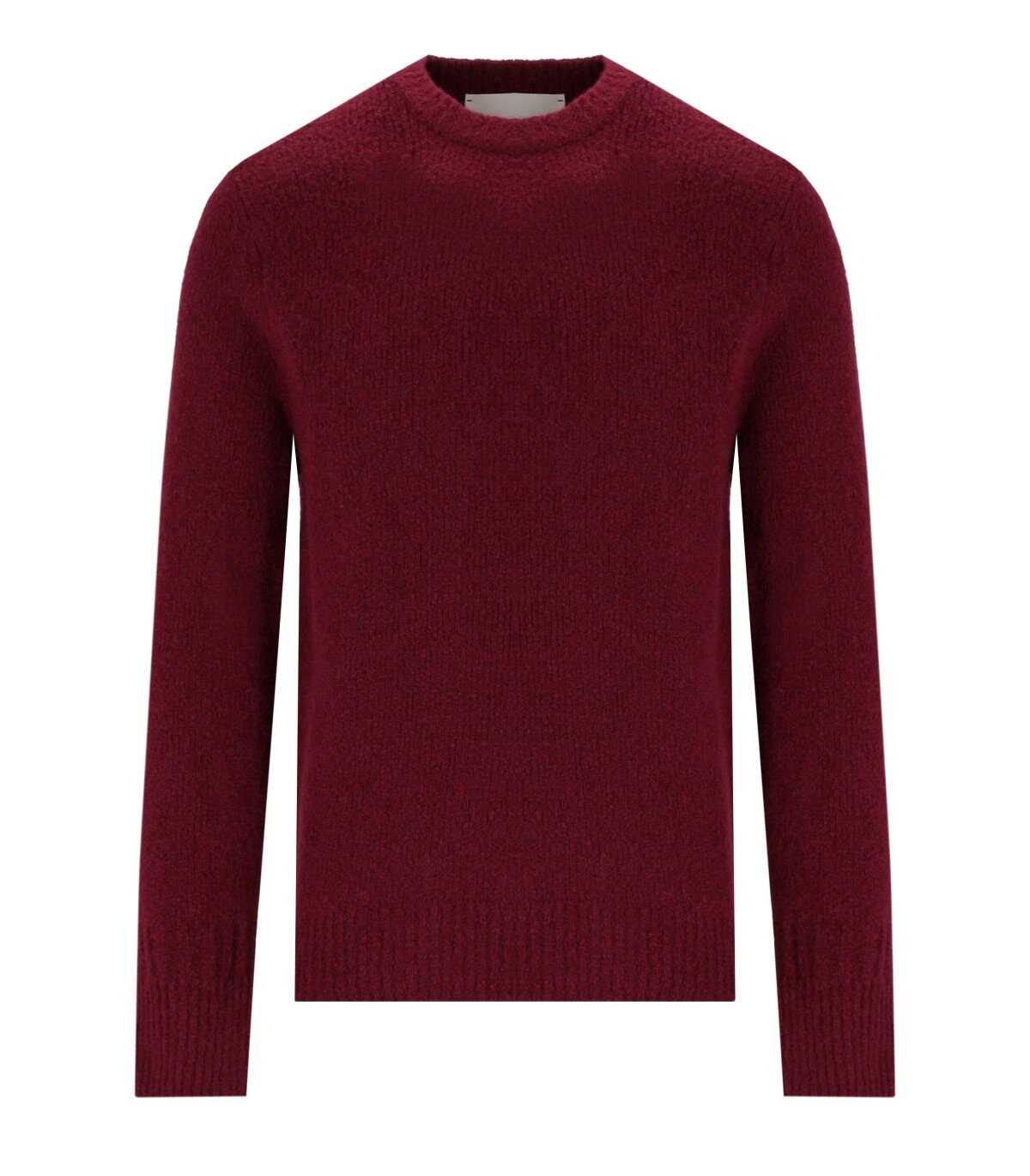 Amarànto jumper made of a cashmere blend wool in a burgundy color. It features long sleeves with ribbed cuffs and has a classic crew neck. The neck and bottom of the sweater are adorned with ribbed texture. Regular fit.