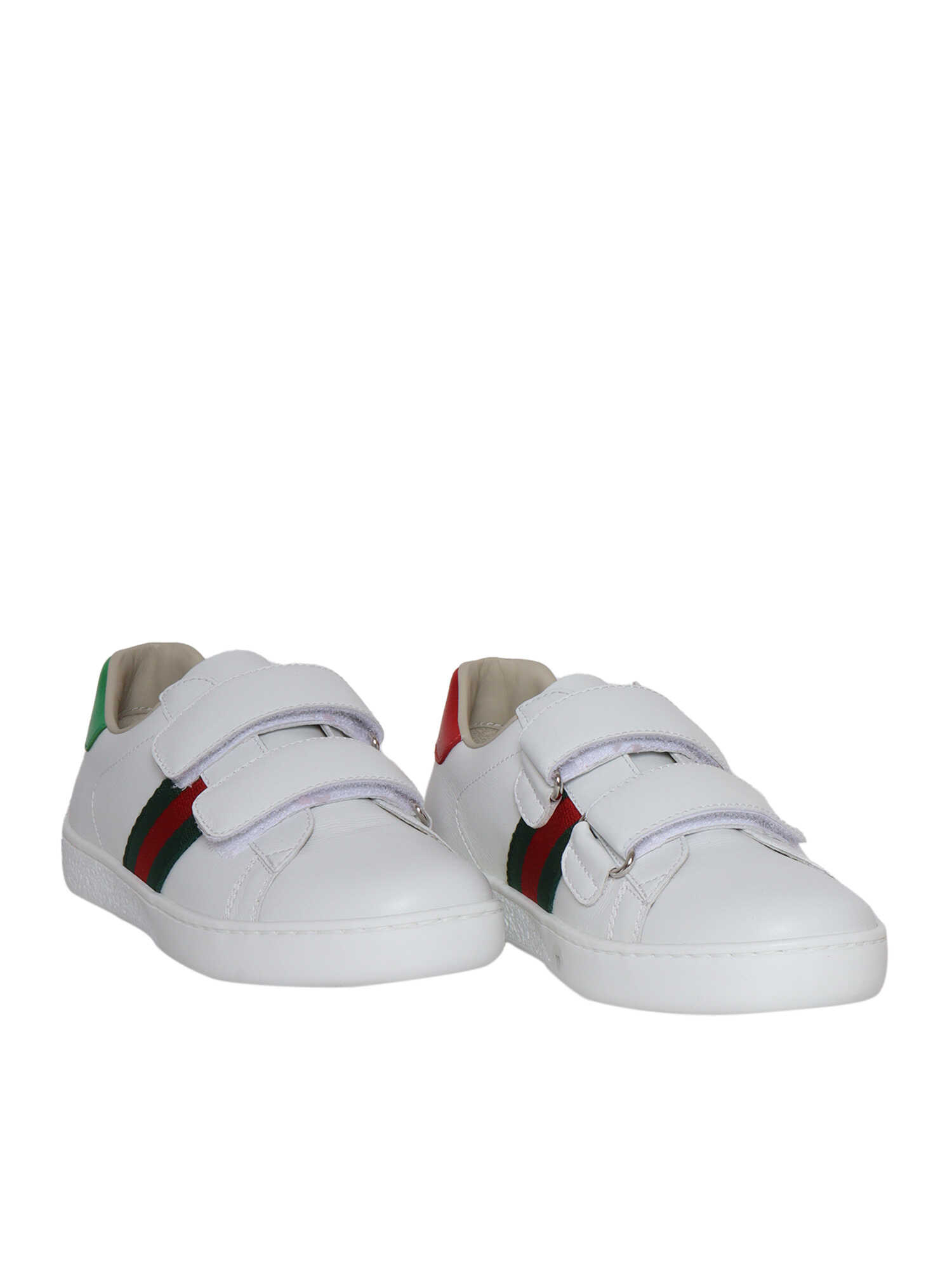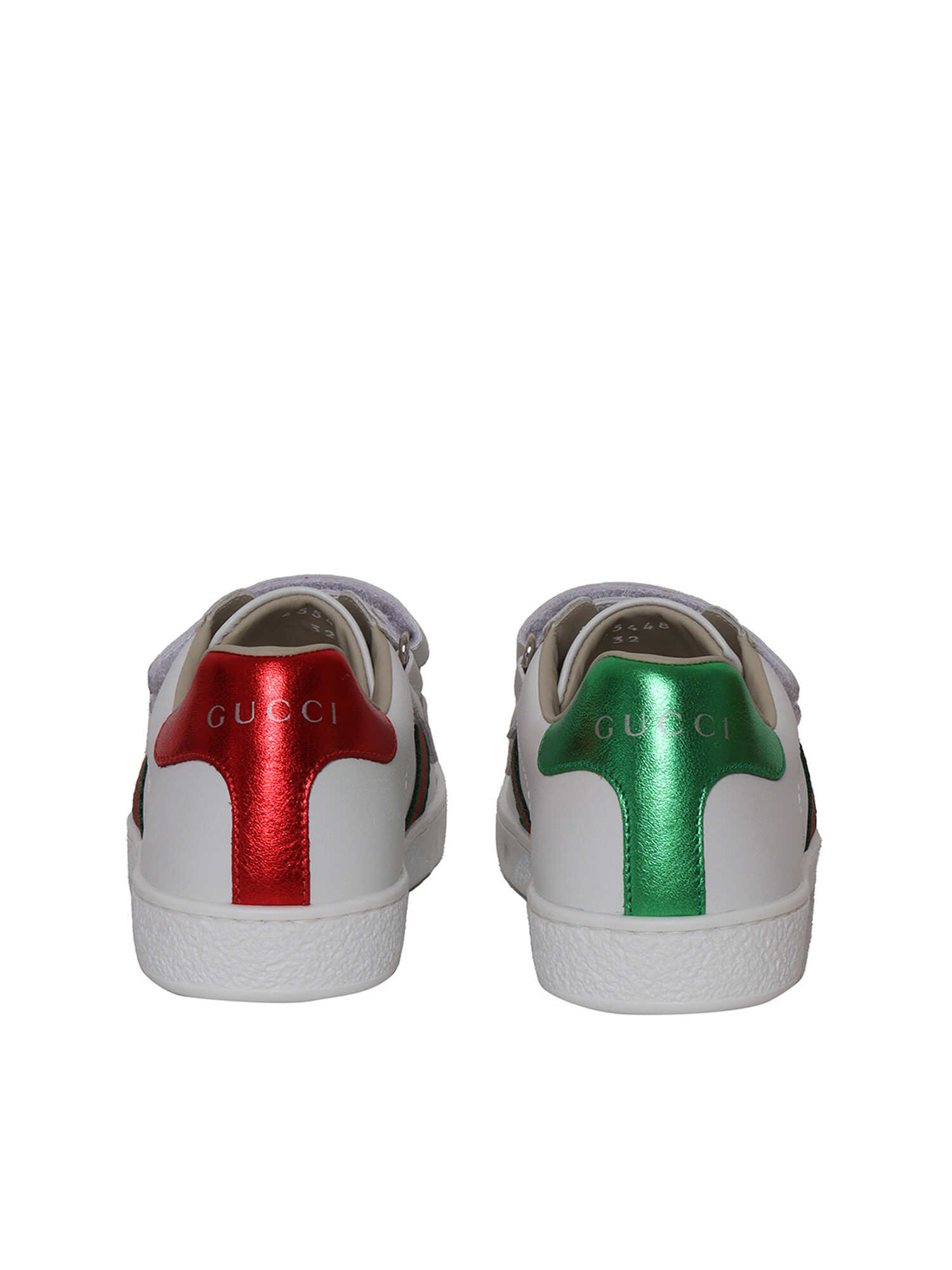 GG New Ace sneaker for children with tears, side web stripes, colored reinforced heel, in leather.