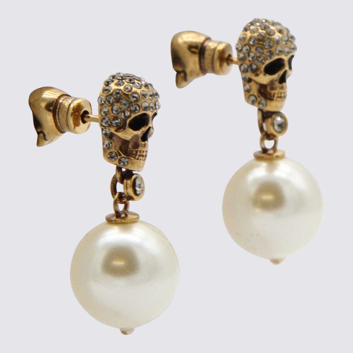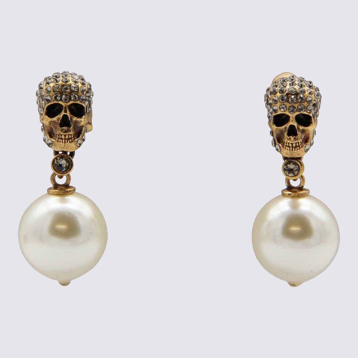 Gold-tone brass earrings from Alexander McQueen featuring skull charm, pavé setting, Swarovski crystal embellishment, faux-pearl embellishment, push-lock fastening and for pierced ears. These earrings come as a pair.