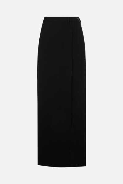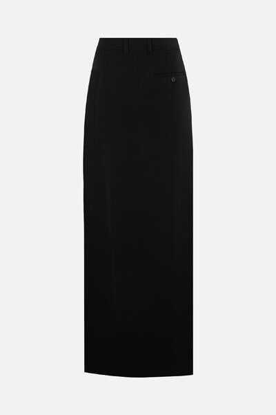 Balenciaga's long skirt crafted in black wool gabardine. Featuring side button / invisible zip closure, belt loops and front slit. Lined interior.