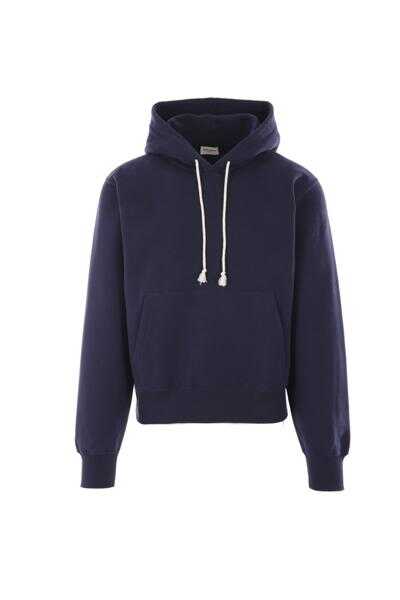 Saint Laurent's hoodie crafted in blue cotton fleece with logo embroidery at chest. Featuring long sleeves, kangaroo pocket and ribbed edges.
