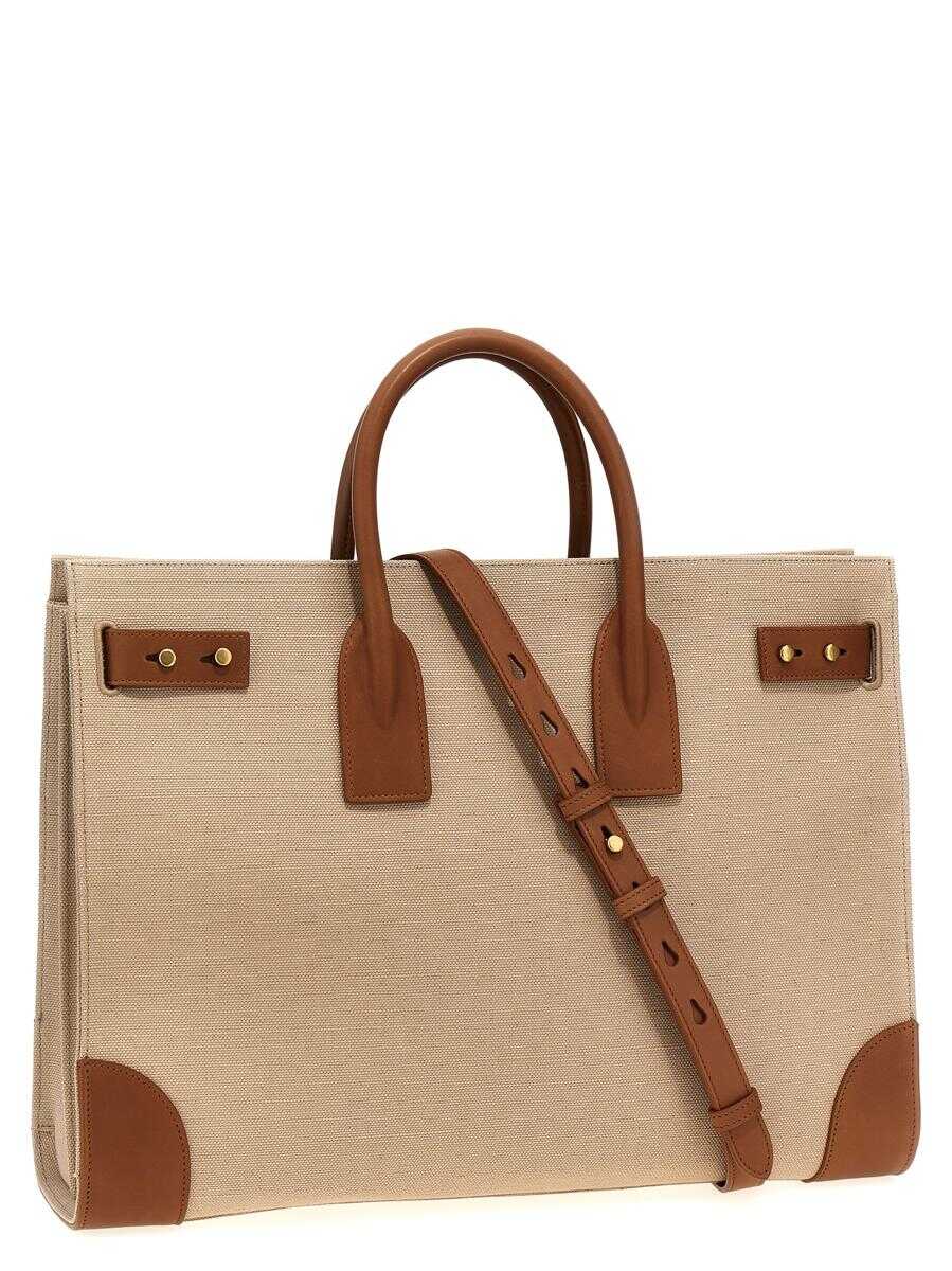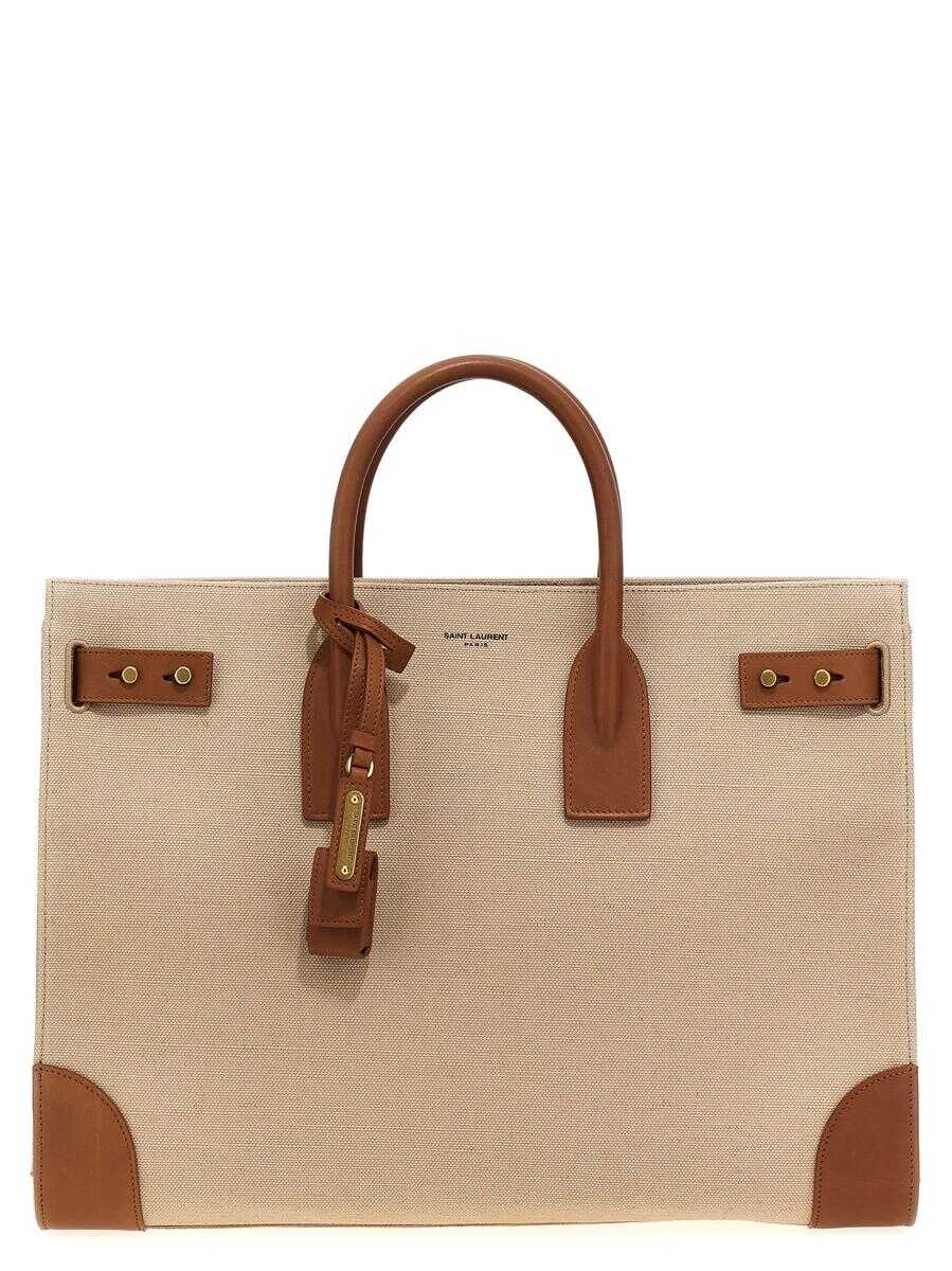 'Sac De Jour' large canvas and leather handbag, double leather handle, adjustable and removable shoulder strap, removable clutch, brass padlock