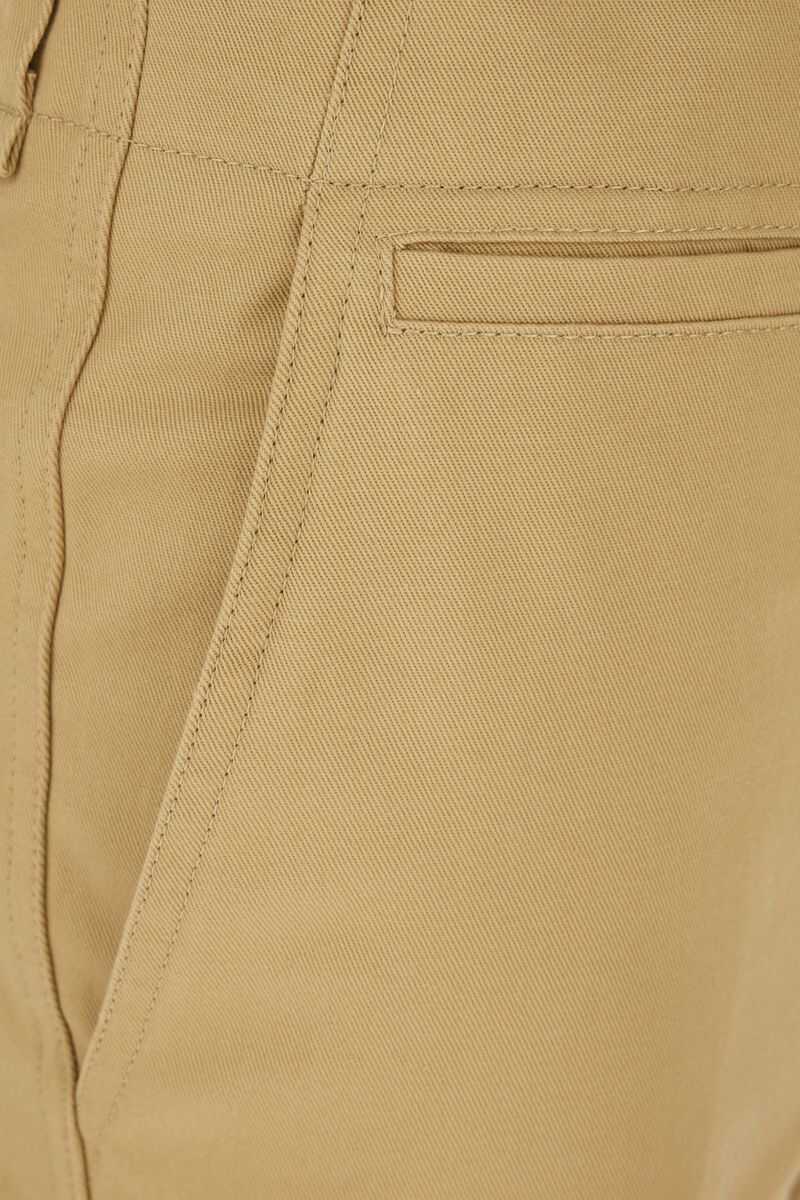 Saint Laurent's straight-leg pants crafted in beige cotton drill. Featuring button closure, belt loops, multiple pockets and central pressed crease.