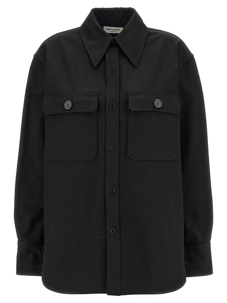 'Saharienne' cotton drill shirt with button closure, pockets, long cuffed sleeves