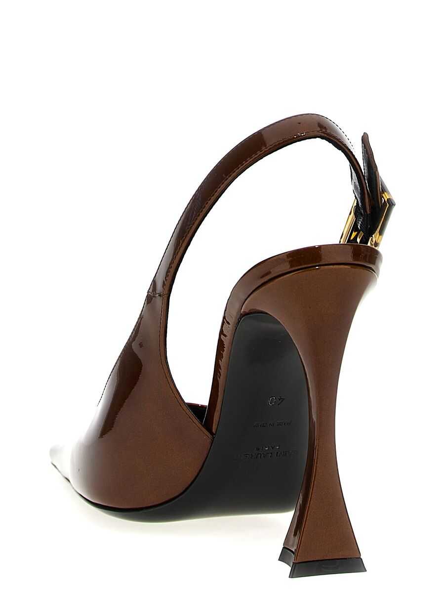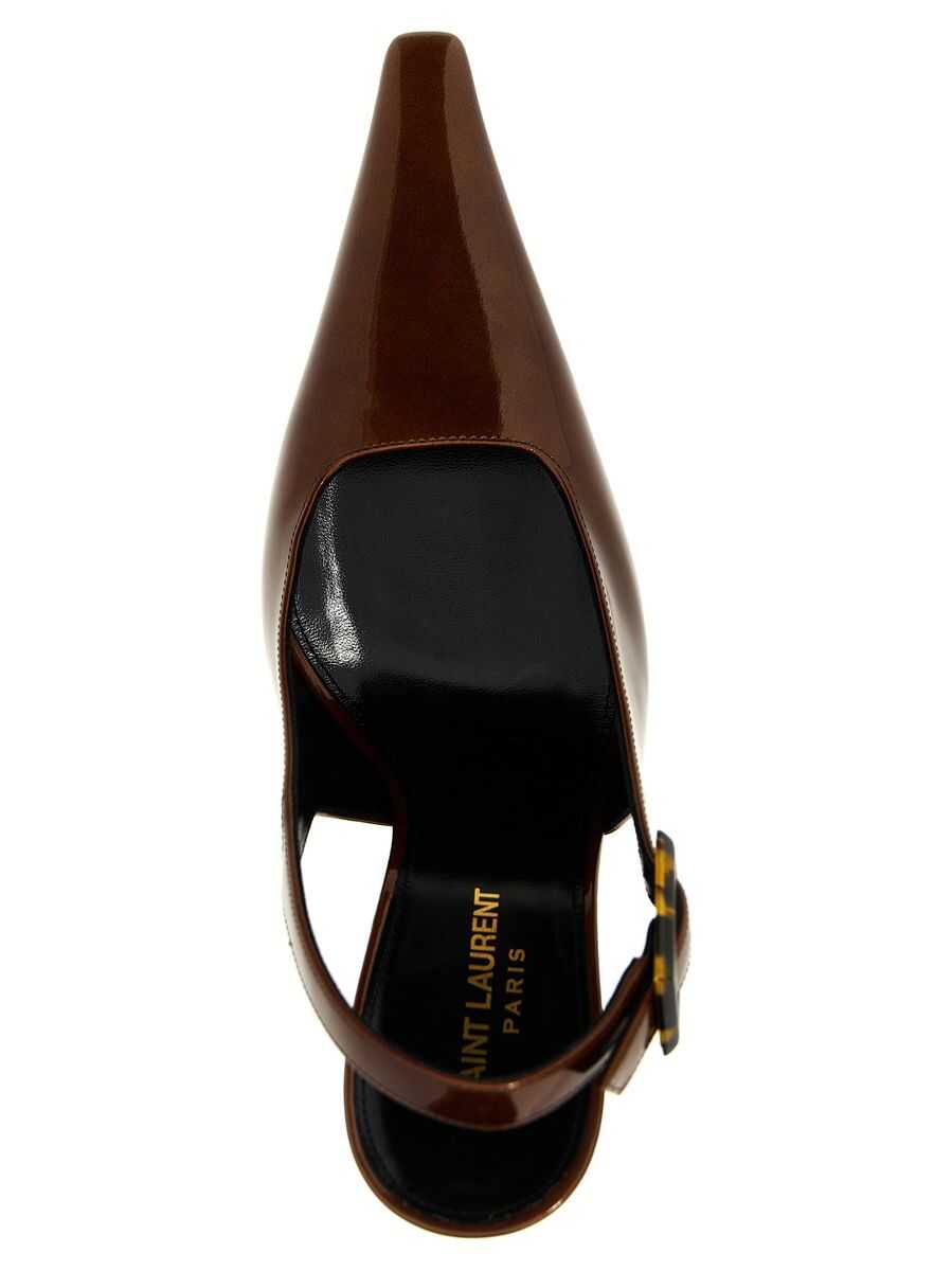 'Dune' patent leather pumps, adjustable strap with tortoiseshell buckle, heel