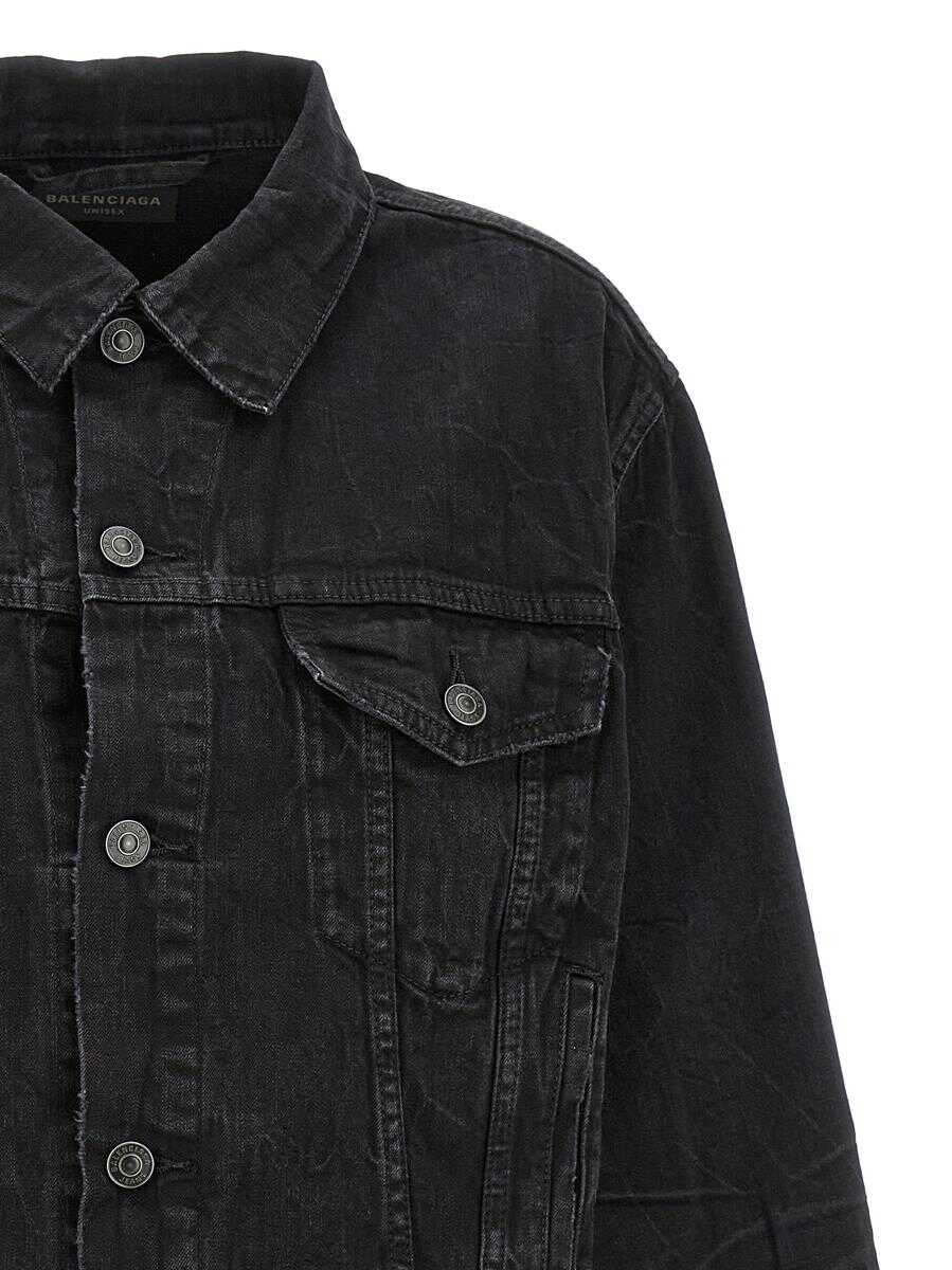 Cotton denim jacket with crinkled effect, front pockets, button closure, long sleeves, adjustable straps at the waist, back logo print