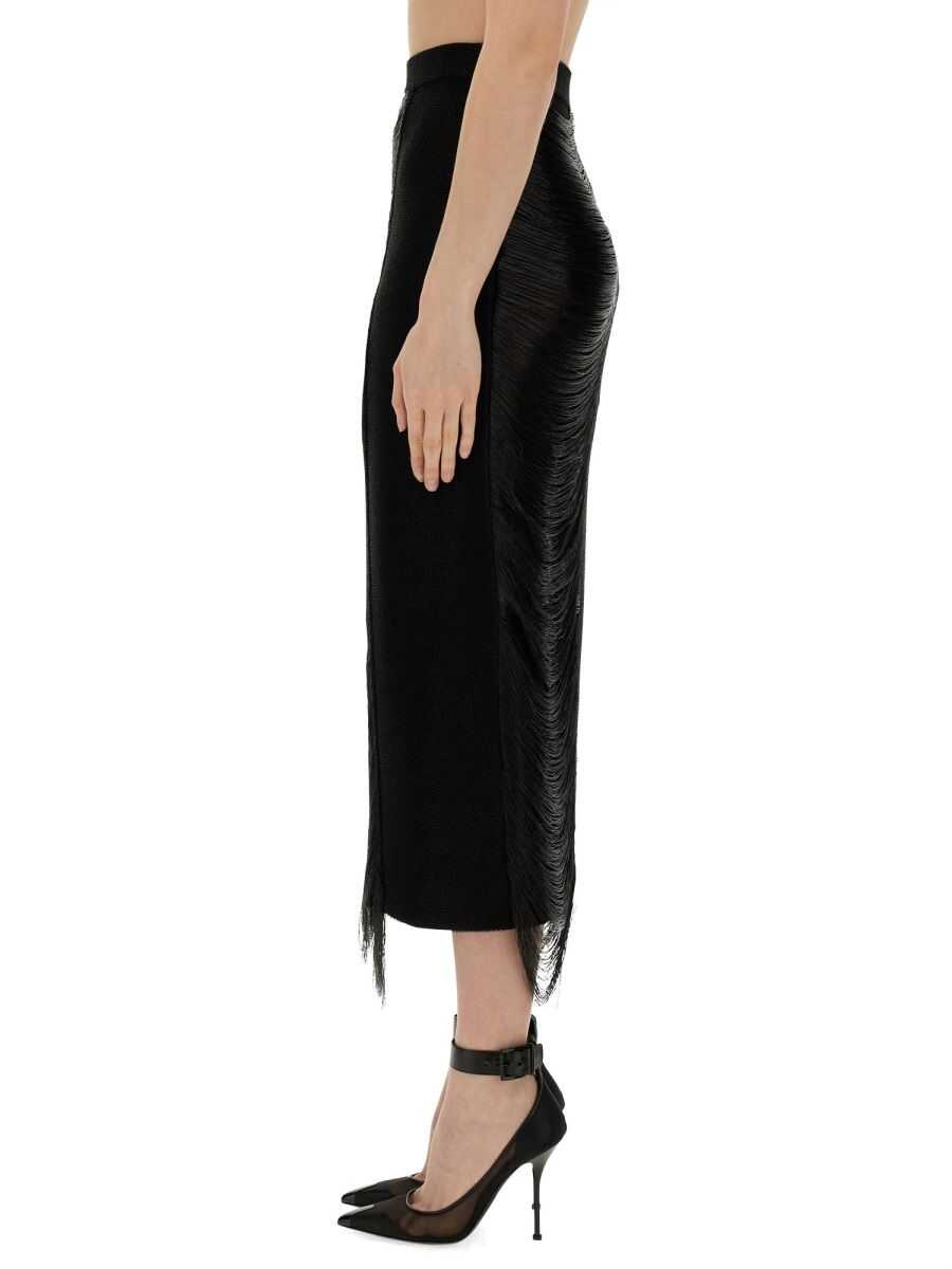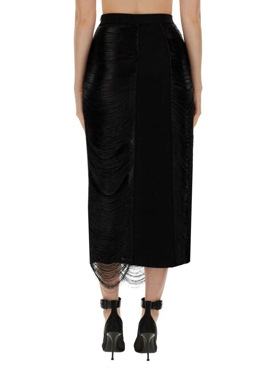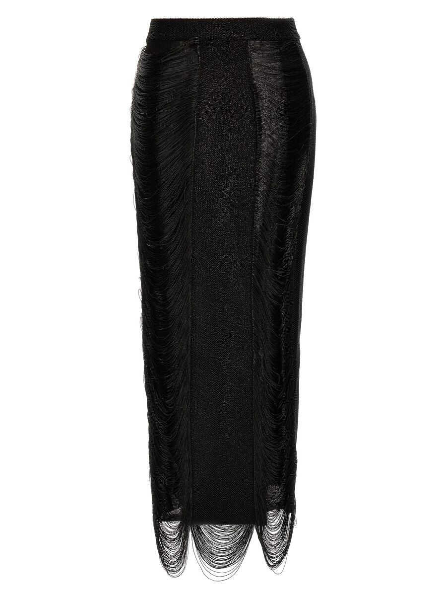 Woven skirt with fringed stitch stitch with fringes, back zip closure
