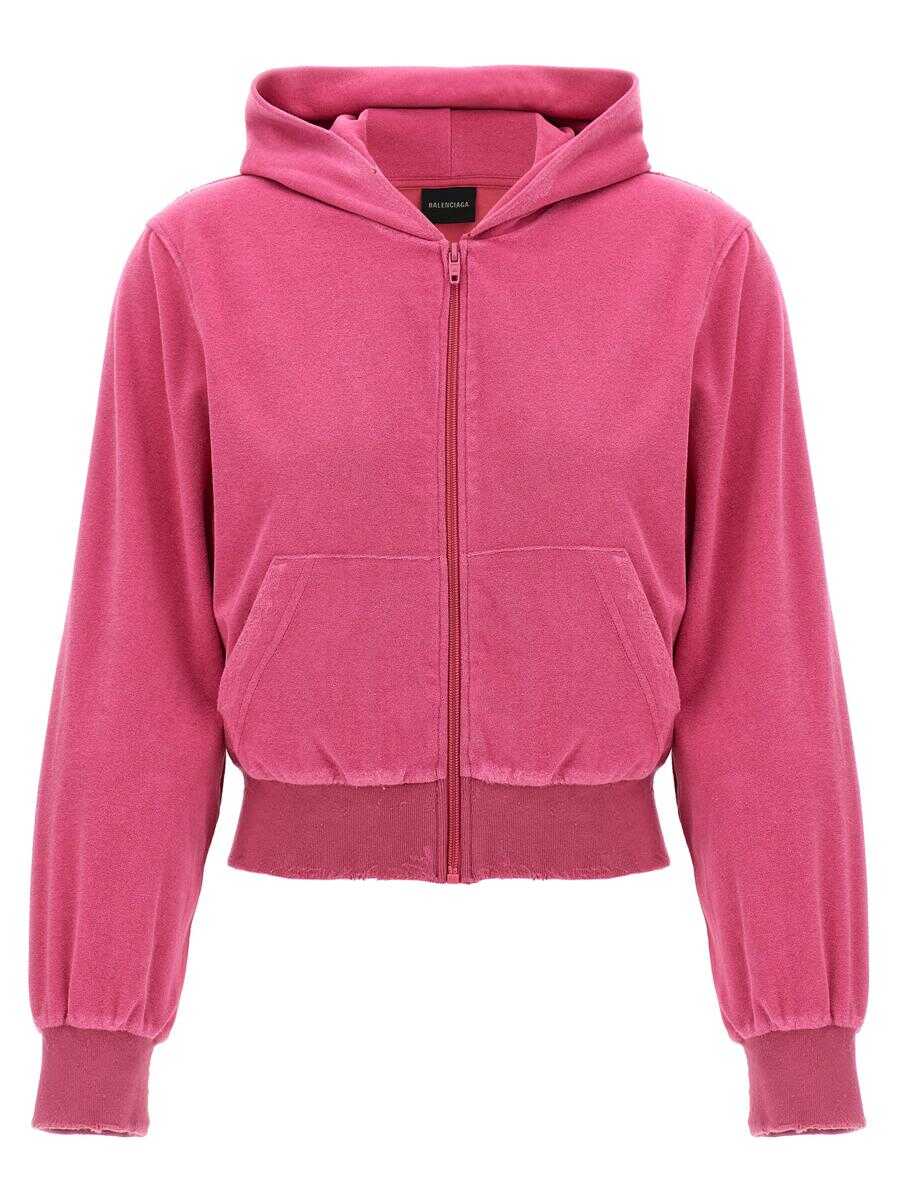 Chenille hoodie with rhinestone logo on the back, zip closure, pockets, long cuffed sleeves