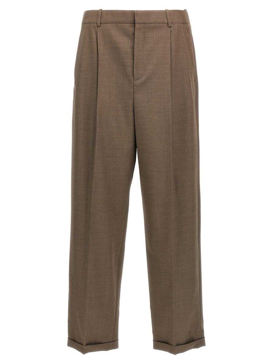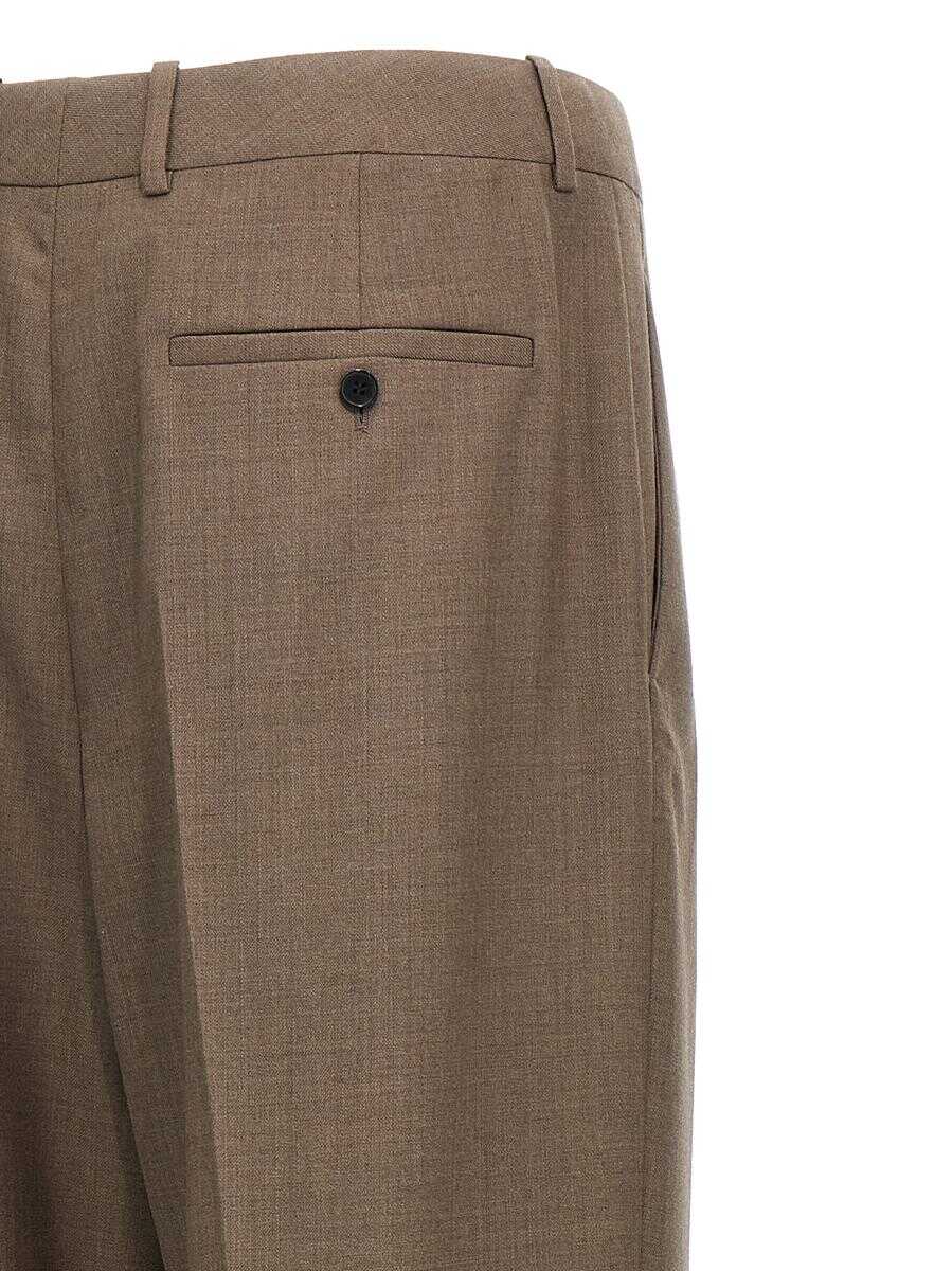 Tailored wool trousers, hook and button zip closure, ironed pleat and pleat, pockets