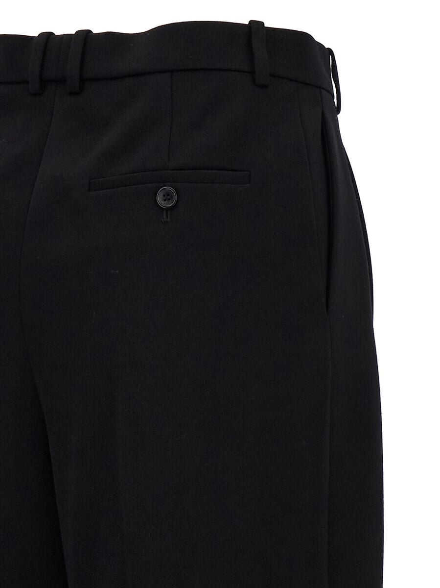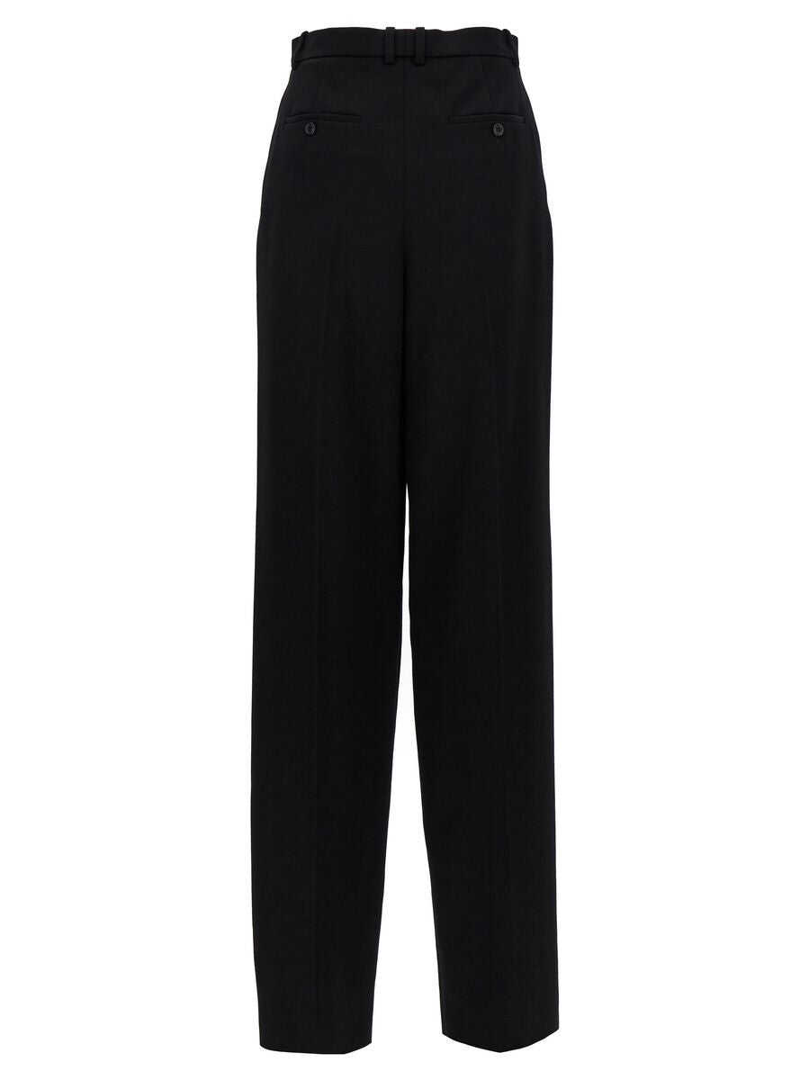 black wool grain de poudre straight leg high-waisted belt loops hook and zip fly fastening two side slit pockets two rear welt pockets