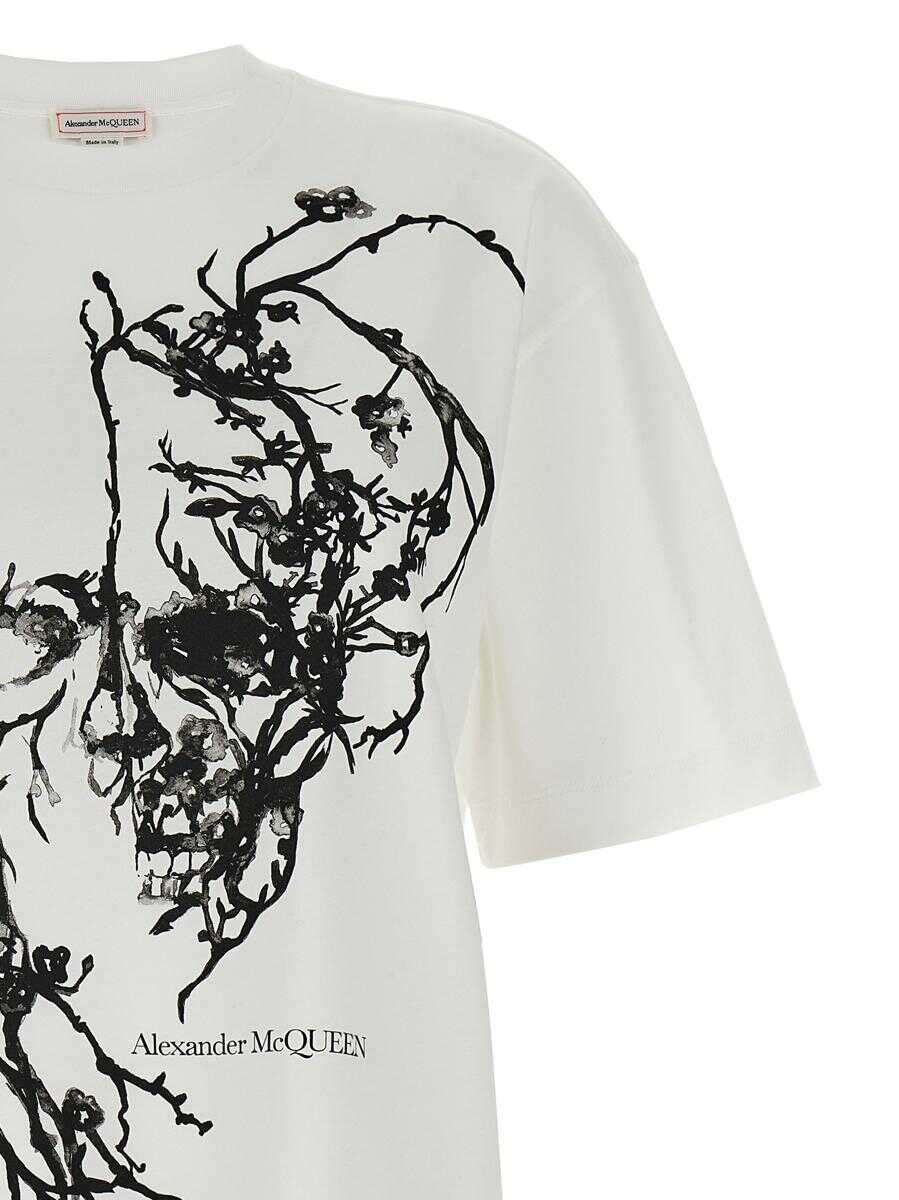 'Cherry Blossom' cotton crew neck t-shirt with front print, short sleeves