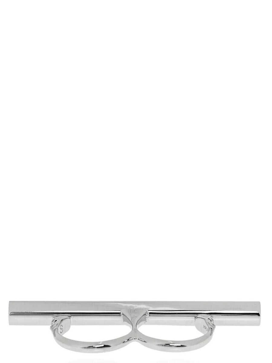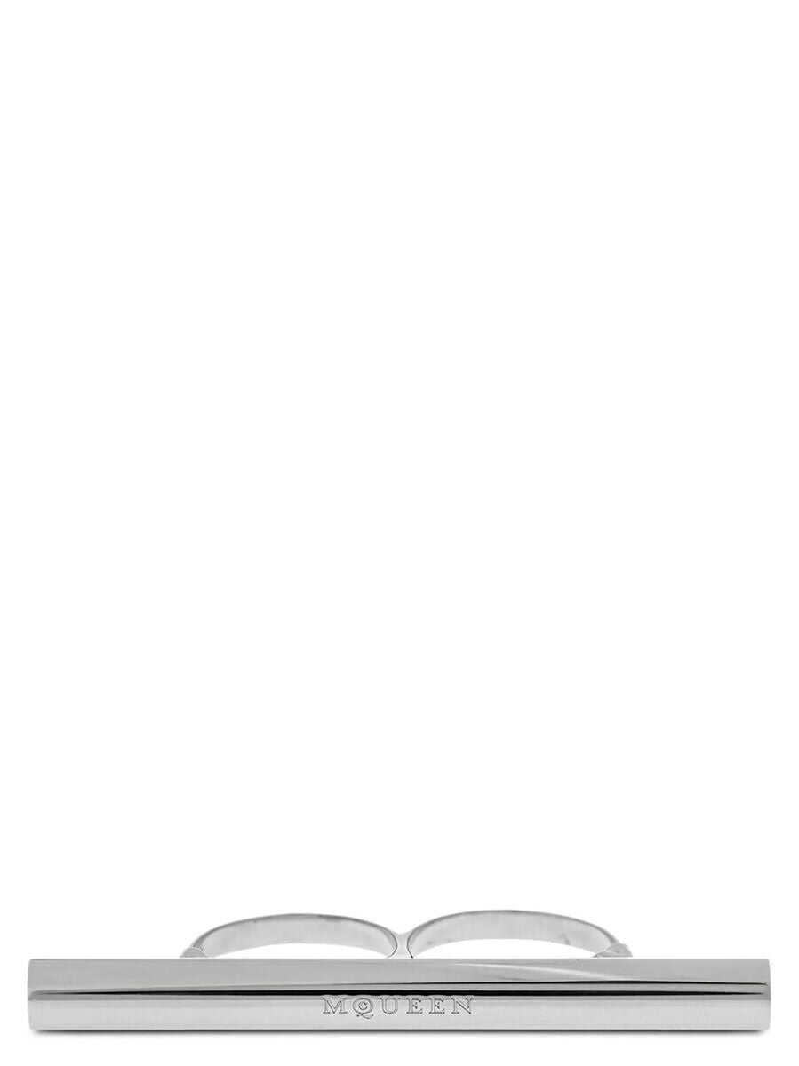 Silver tone metal rings from Alexander McQueen featuring two rings, silver tone and logo.