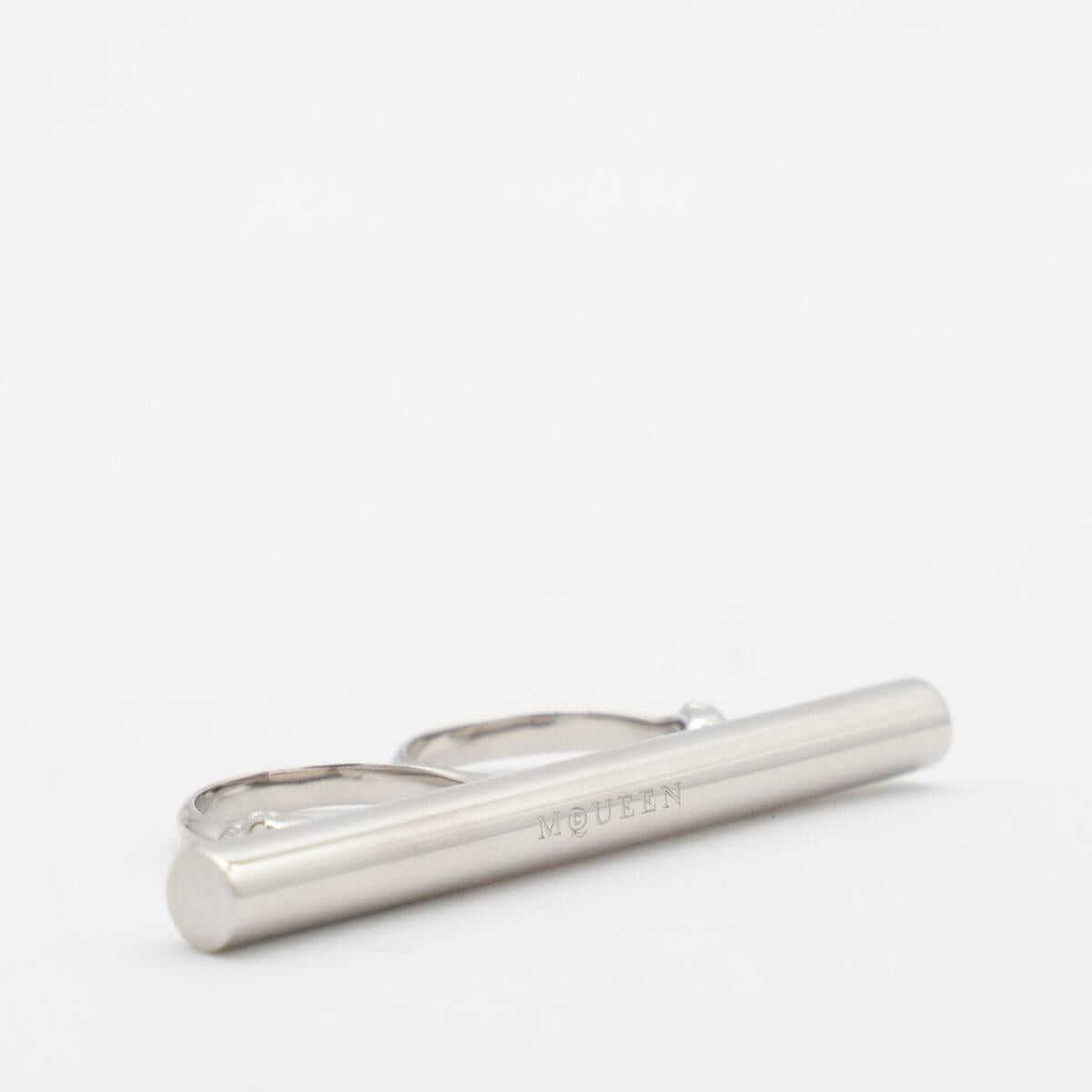 Silver tone metal rings from Alexander McQueen featuring two rings, silver tone and logo.
