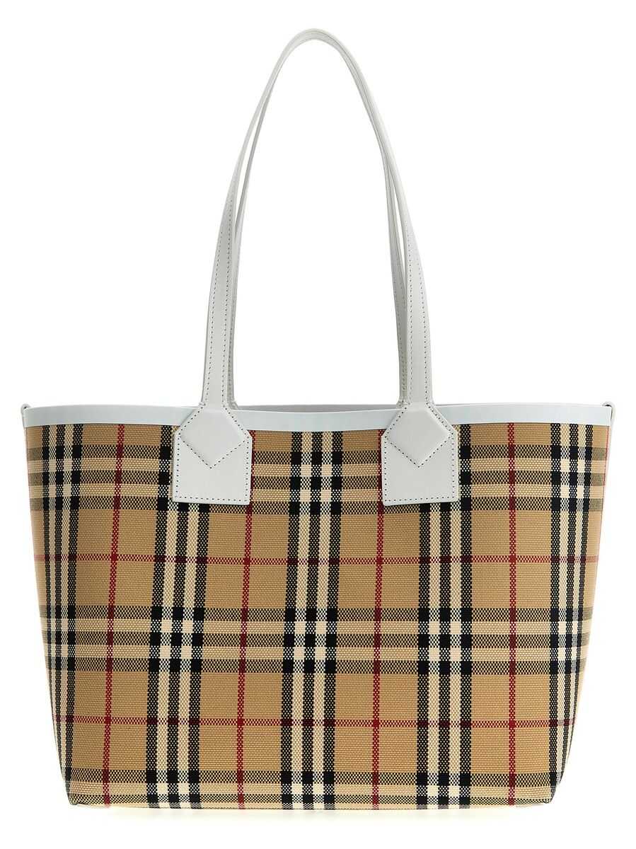 Small cotton canvas 'Tote London' shopping bag with Burberry Check pattern, leather details, double handle, matching removable clutch