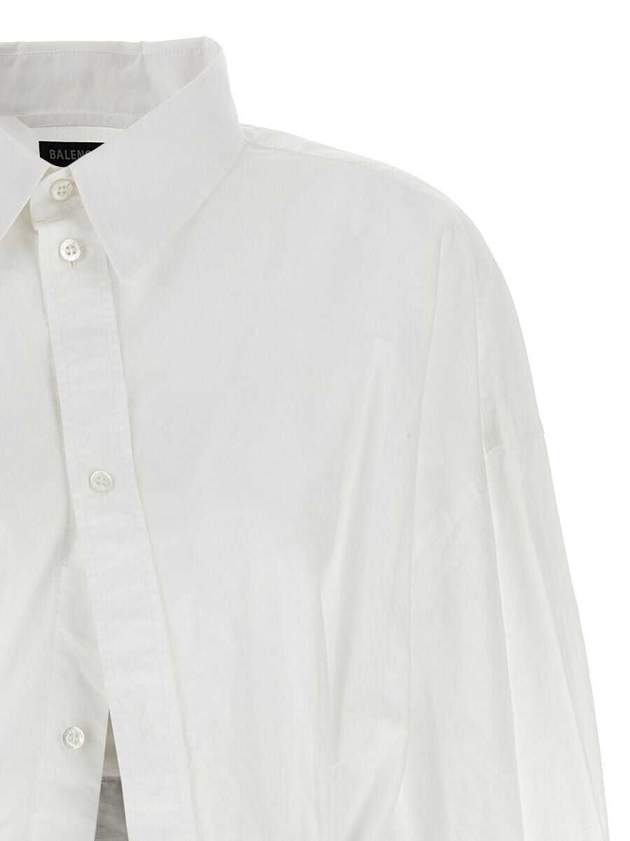 Wrinkled-effect cotton shirt with button closure, contrast waist belt, long cuffed sleeves