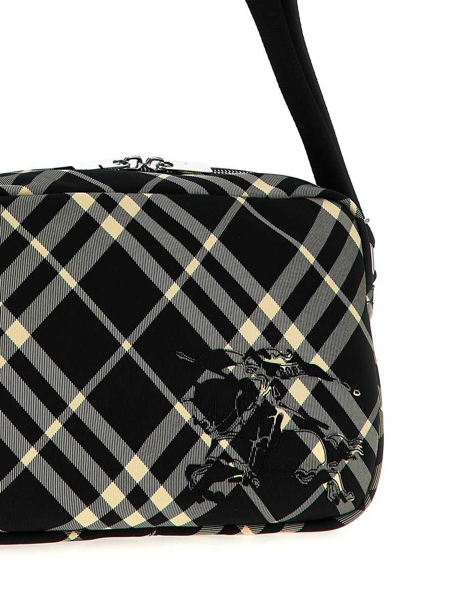 'Check' crossbody bag in check print fabric, front EKD logo, zip closure, adjustable shoulder strap