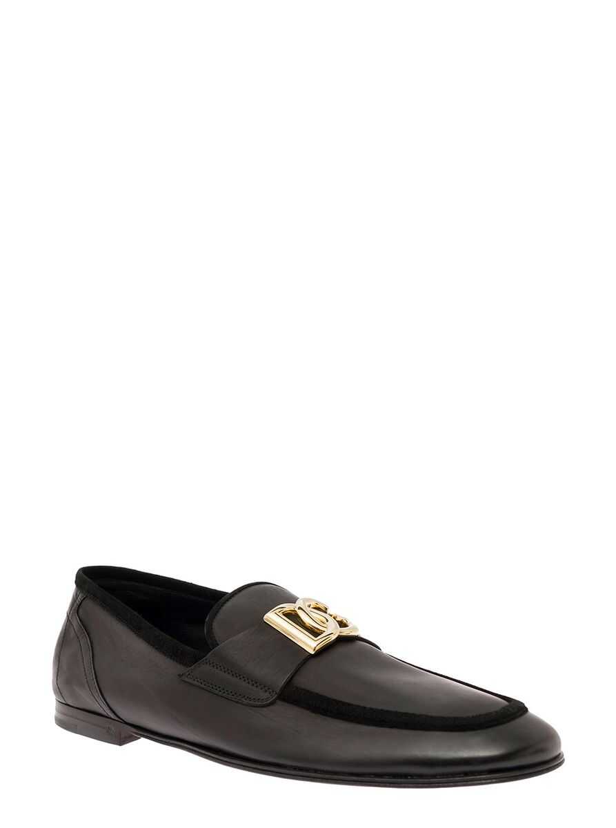 black leather gold-tone logo plaque branded insole almond toe slip-on style flat leather sole