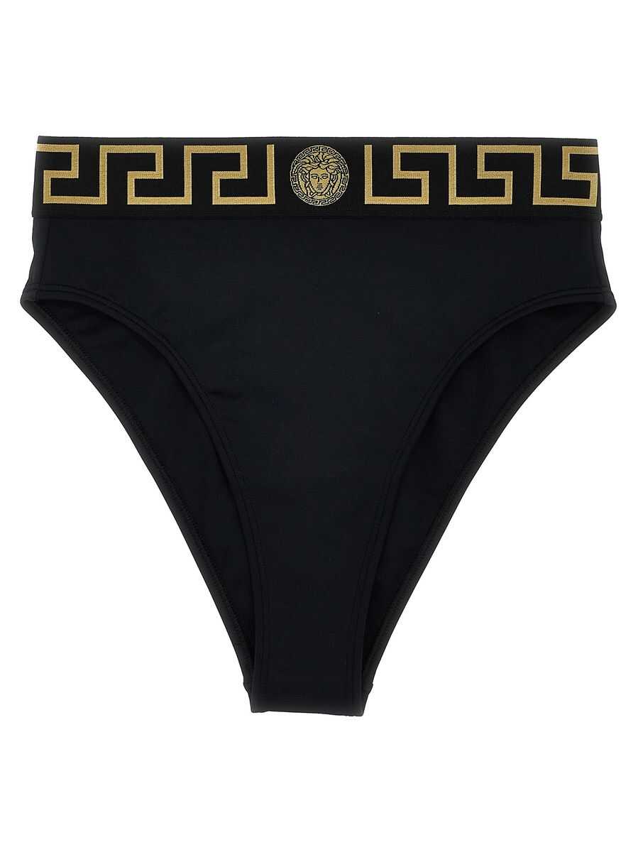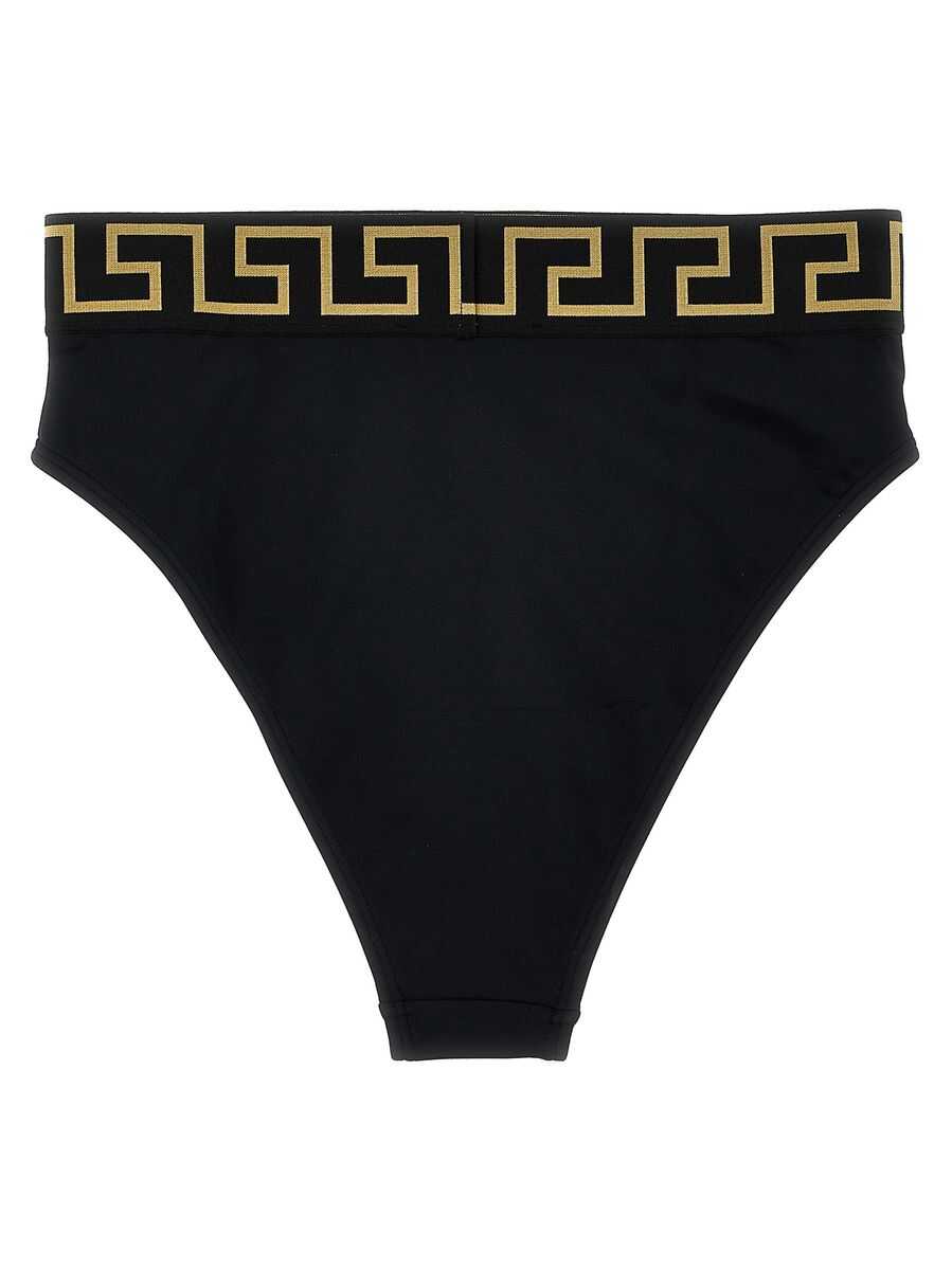 Bikini bottoms in stretch fabric with elastic waistband with 'Greca' pattern, high waist model