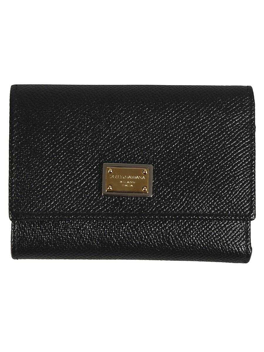 black calf leather gold-tone logo plaque tri-fold design snap fastening internal card slots internal note compartment rear zip-fastening pocket gold-tone hardware
