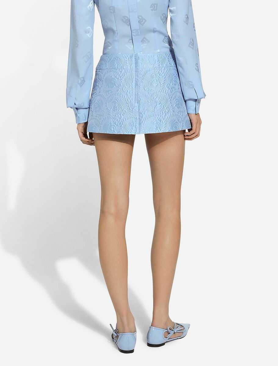 Light blue cotton skirt from Dolce&Gabbana featuring back zip fastening, all over motif and mini length.