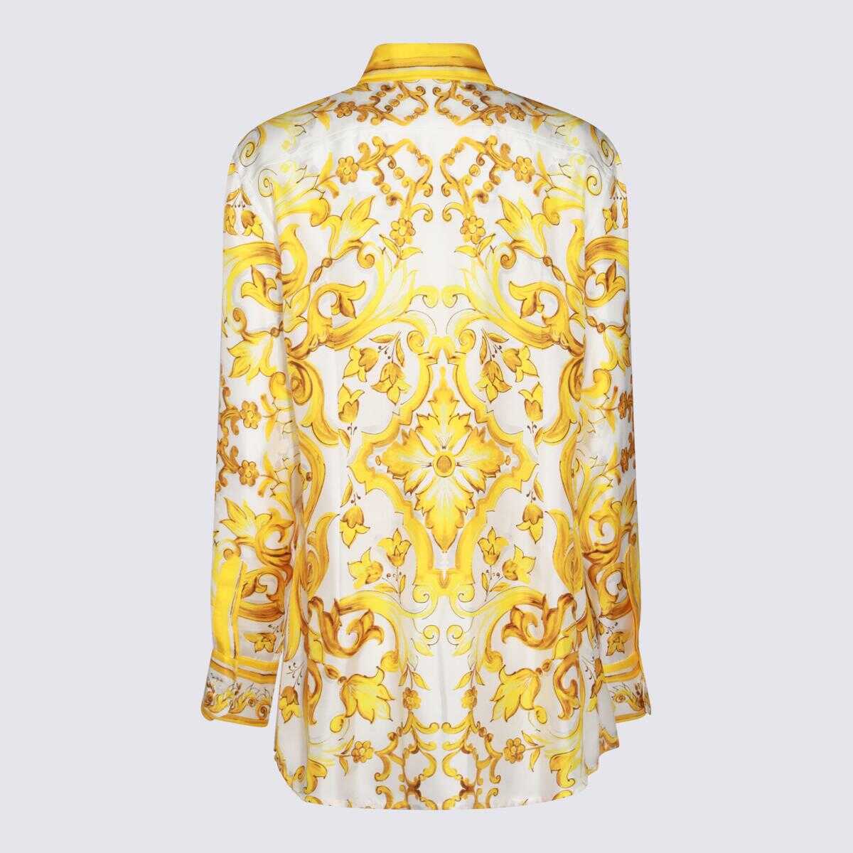 Gold tone silk shirt from Dolce&Gabbana featuring long sleeves, shirt collar, all over print and buttons fastening.
