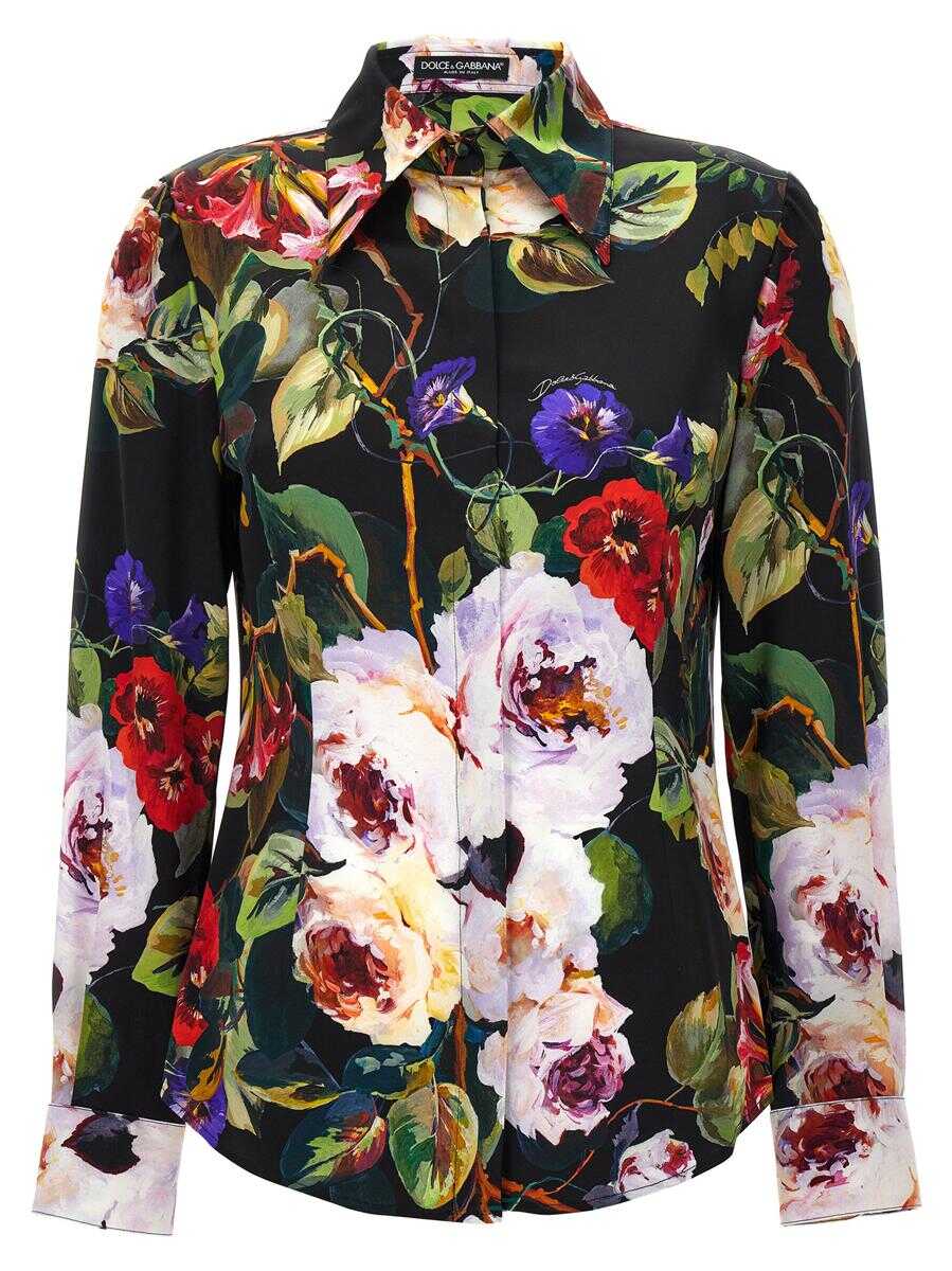 'Roseto' stretch silk shirt with all-over print, pointed collar, covered button closure
