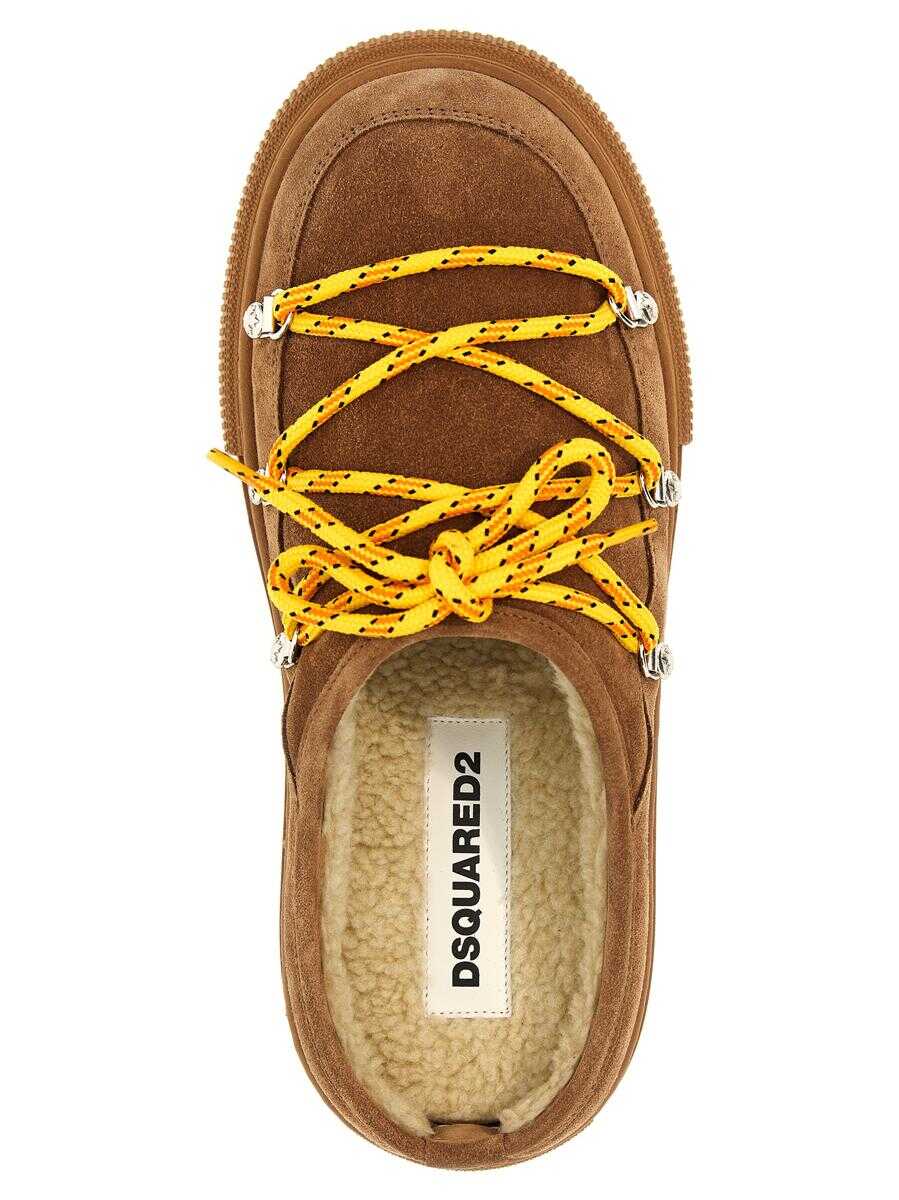 Suede 'Boogie' sabots, shearling lining, colorful lace detail, rubber sole