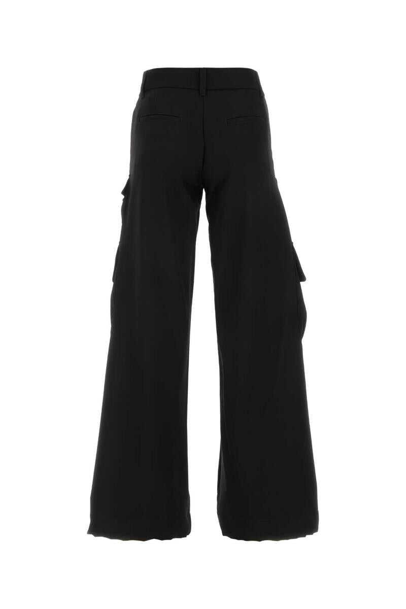 Black cargo pants. Button and zipper closure. Flush pockets on sides. Flap pockets sewn on back. Cargo pockets. Oversize fit.
