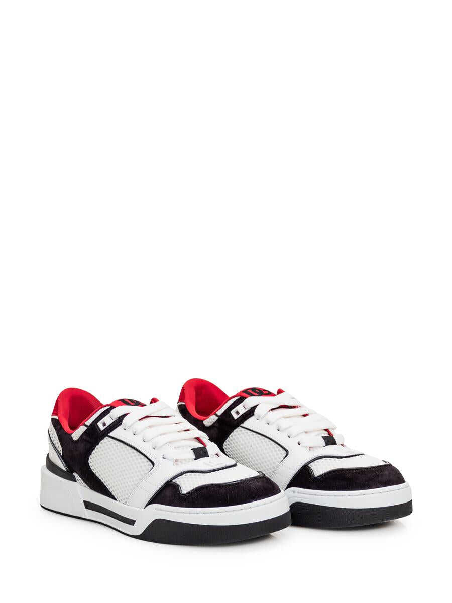 White sneaker with mesh pattern. Suede leather inserts. Lace-up closure. Contrasting heel. Logo patch on tongue. Logo on the back.