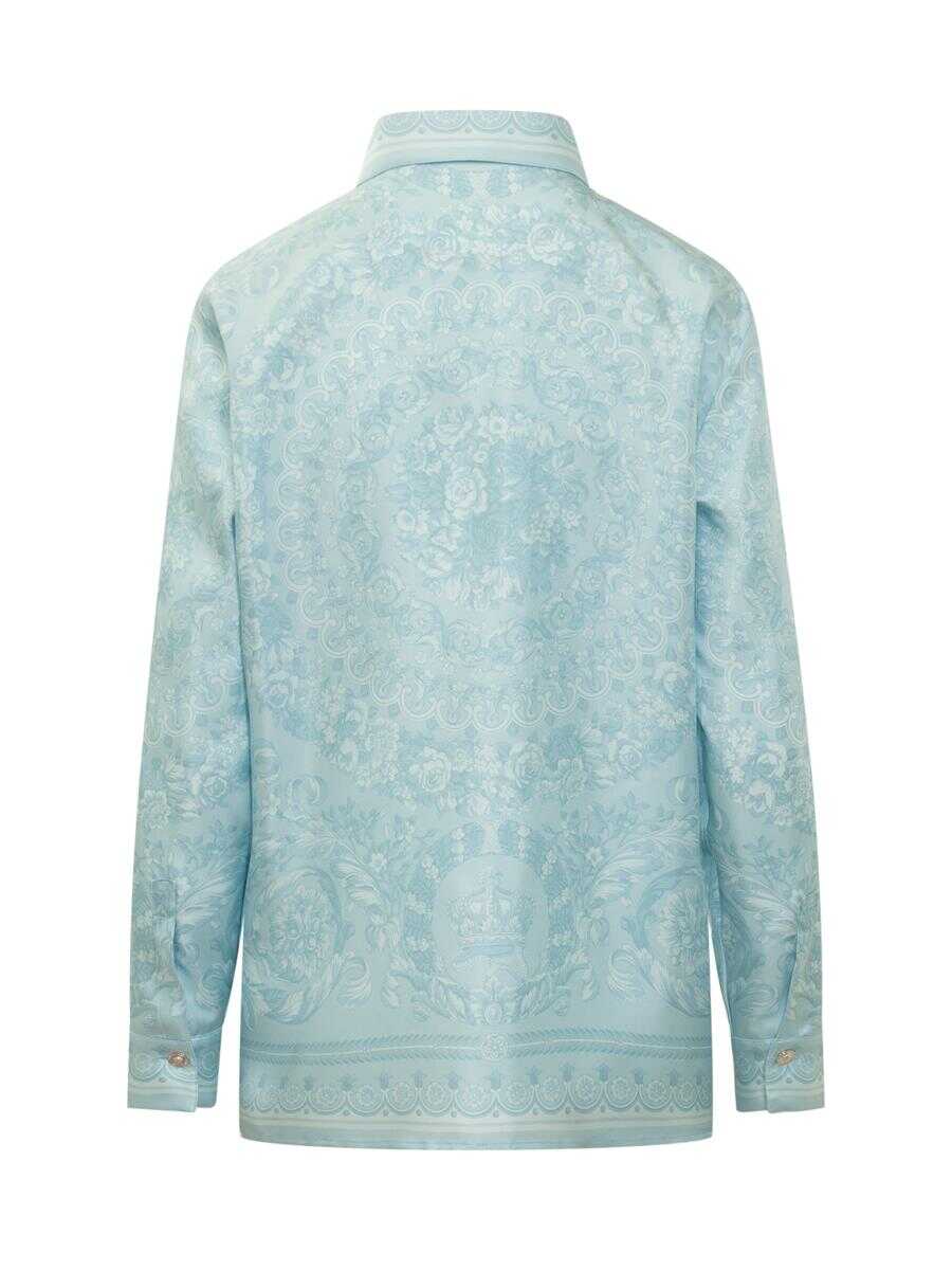 Silk long-sleeved shirt. Pointed collar. Button closure. Buttons on cuffs.