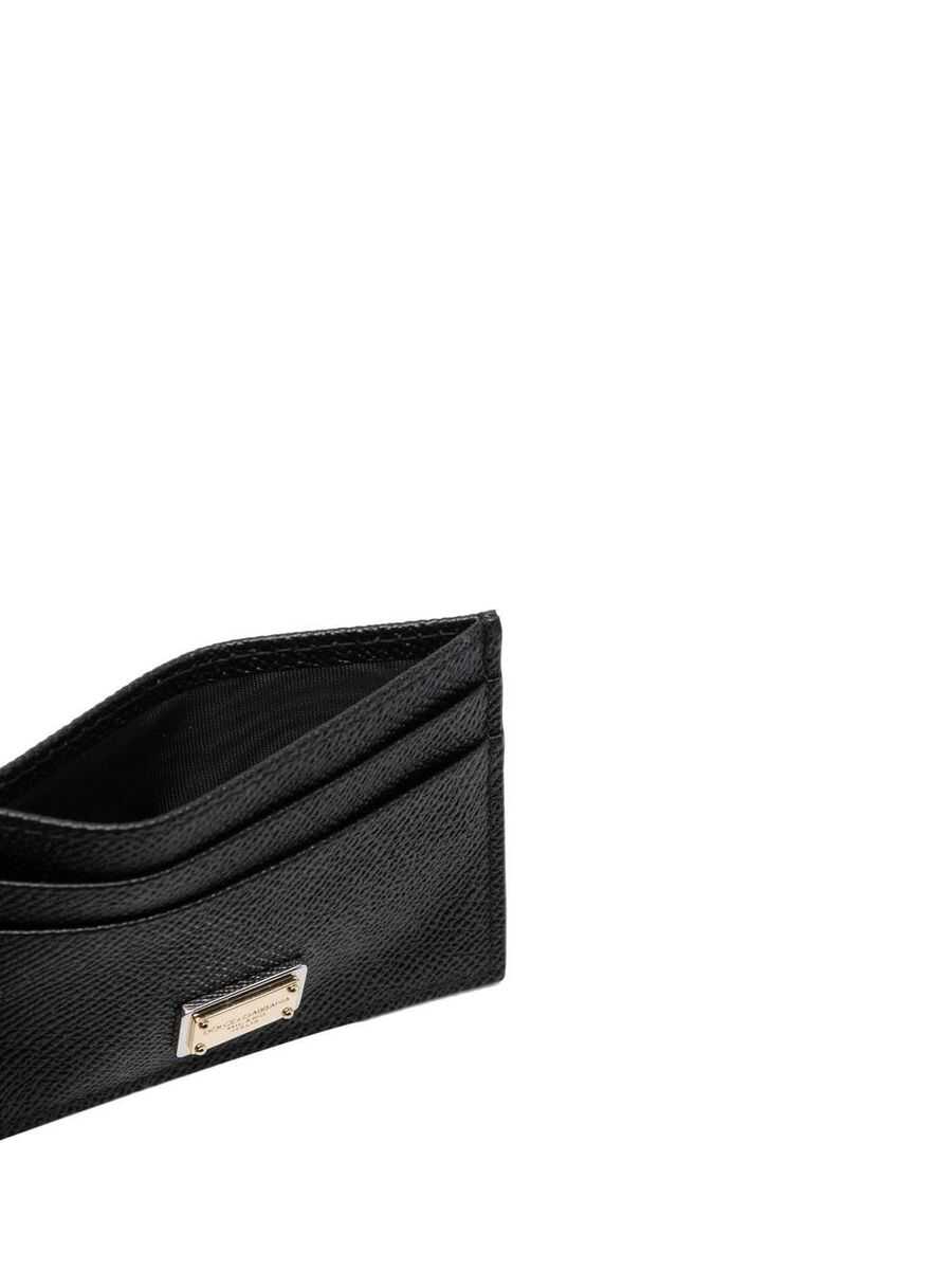 Dolce & Gabbana’s refined black leather card holder comes with the sleek gold-tone metal plaque with embossed logo at front. Made in Italy, it features four card slots and a central pocket.