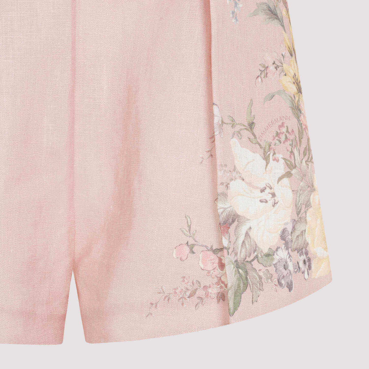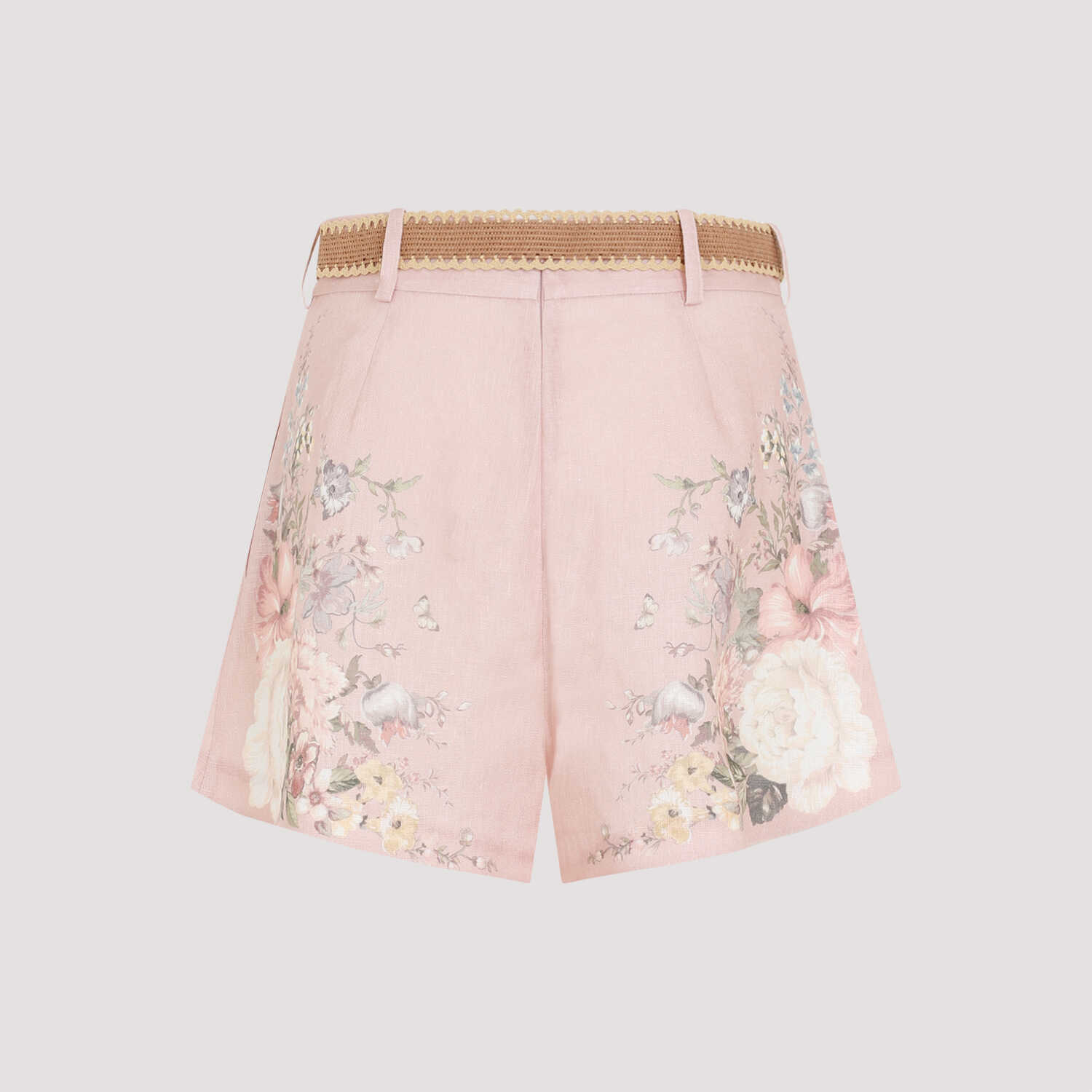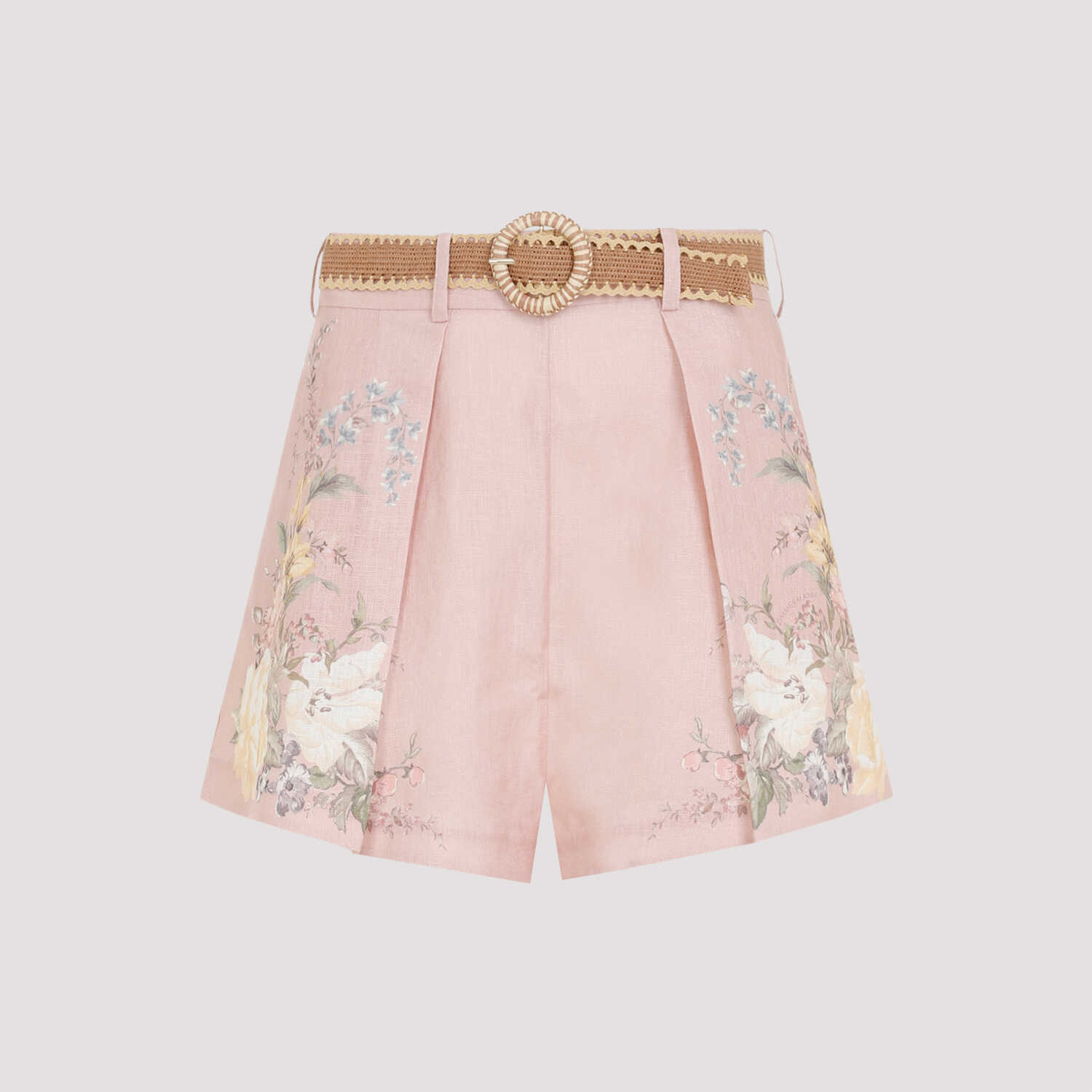 Elevate your summer style with these stunning Multicolour linen shorts from ZIMMERMANN. Featuring a chic floral design on a pink background, these shorts are perfect for any occasion. The pure linen fabric and tailored details add a touch of luxury, while the back zipped fastening and side pockets offer both style and functionality. Complete your look with a brown belt for a fashionable twist. Embrace the essence of elegance with ZIMMERMANN 9921ASS243.