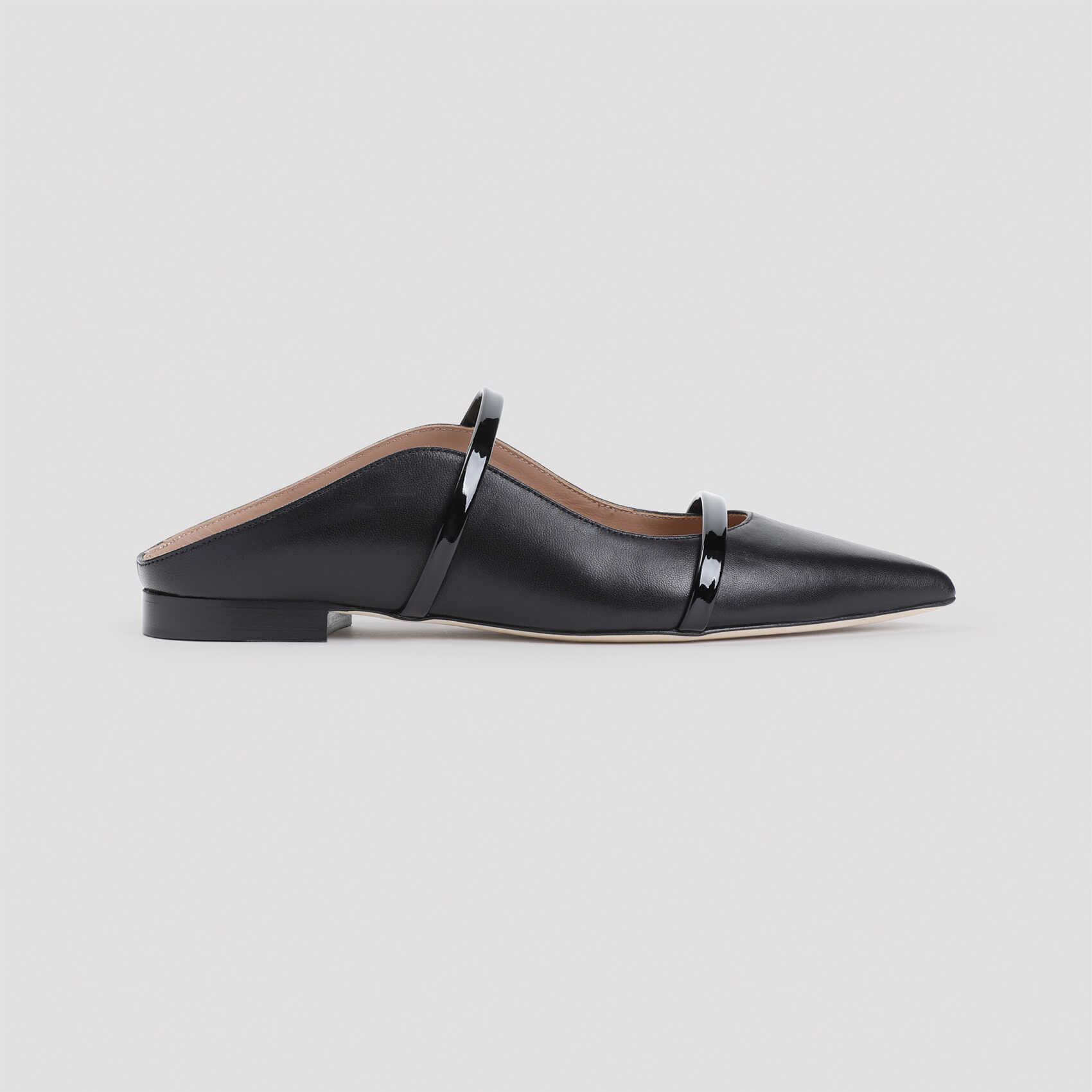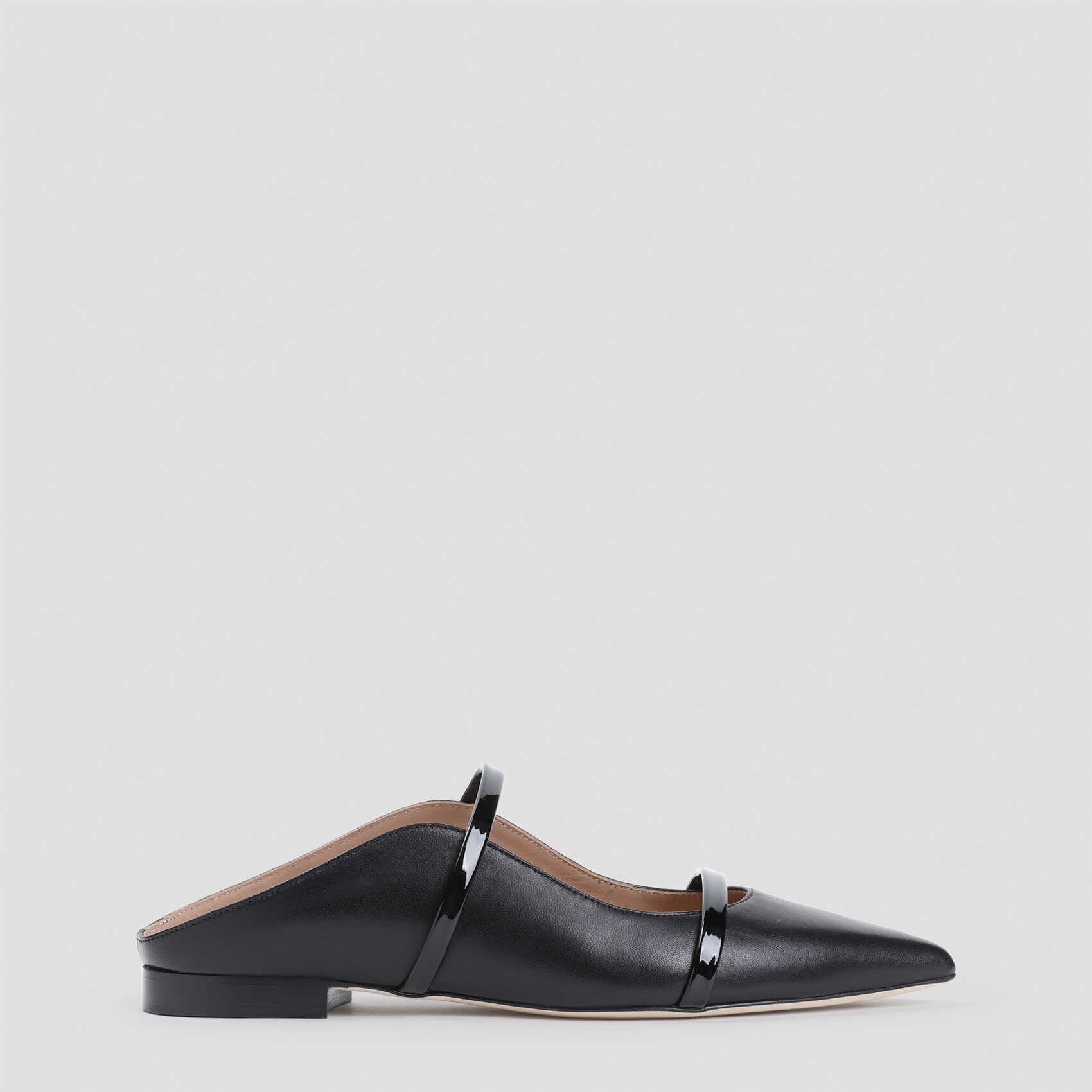 Step out in style with these elegant Malone Souliers Maureen flat ballerinas. Made from luxurious black nappa leather, featuring iconic patent leather straps, a pointed toe, and a comfortable 1cm heel height. Perfect for any occasion, these ballerinas are a must-have for every fashion-forward woman. Elevate your look with Malone Souliers.