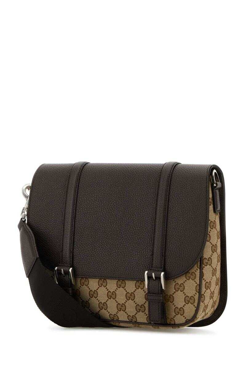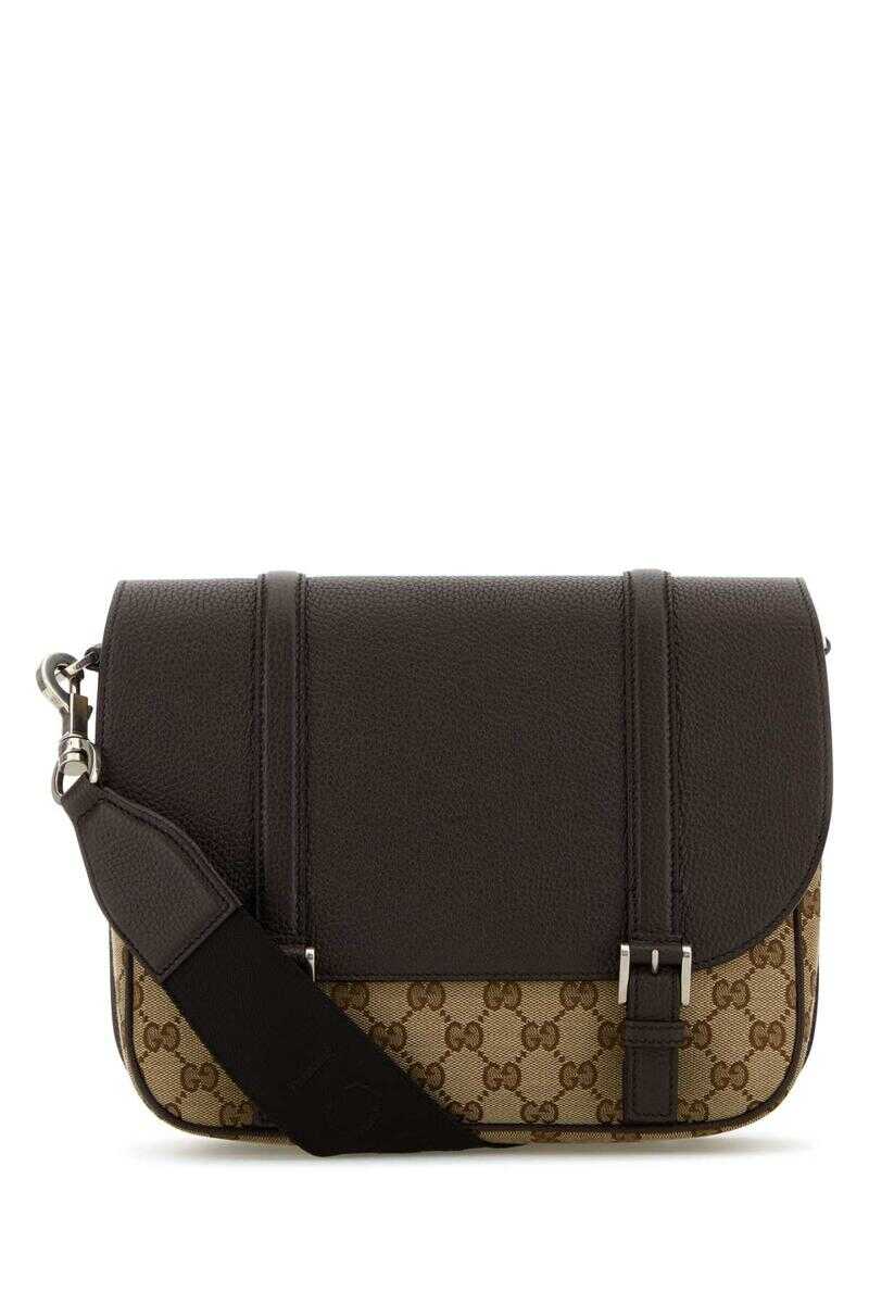 Brown leather GG crossbody bag Width: 47 cm Height: 30 cm Depth: 8 cm Min shoulder strap length: 80 cm Max shoulder strap length: 124 cm