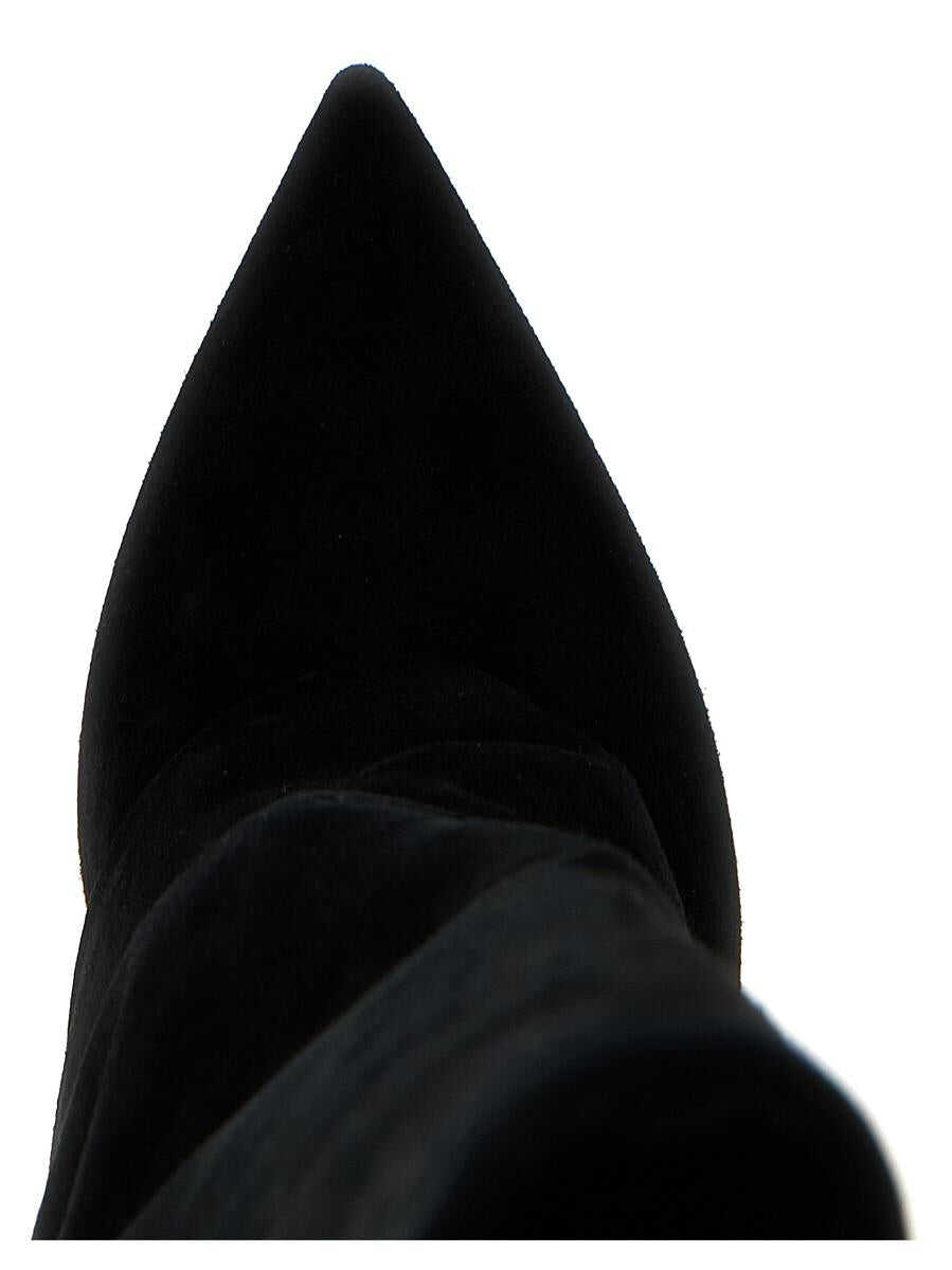 'Uma' suede boots with decorative side strap, lacquered stiletto heel